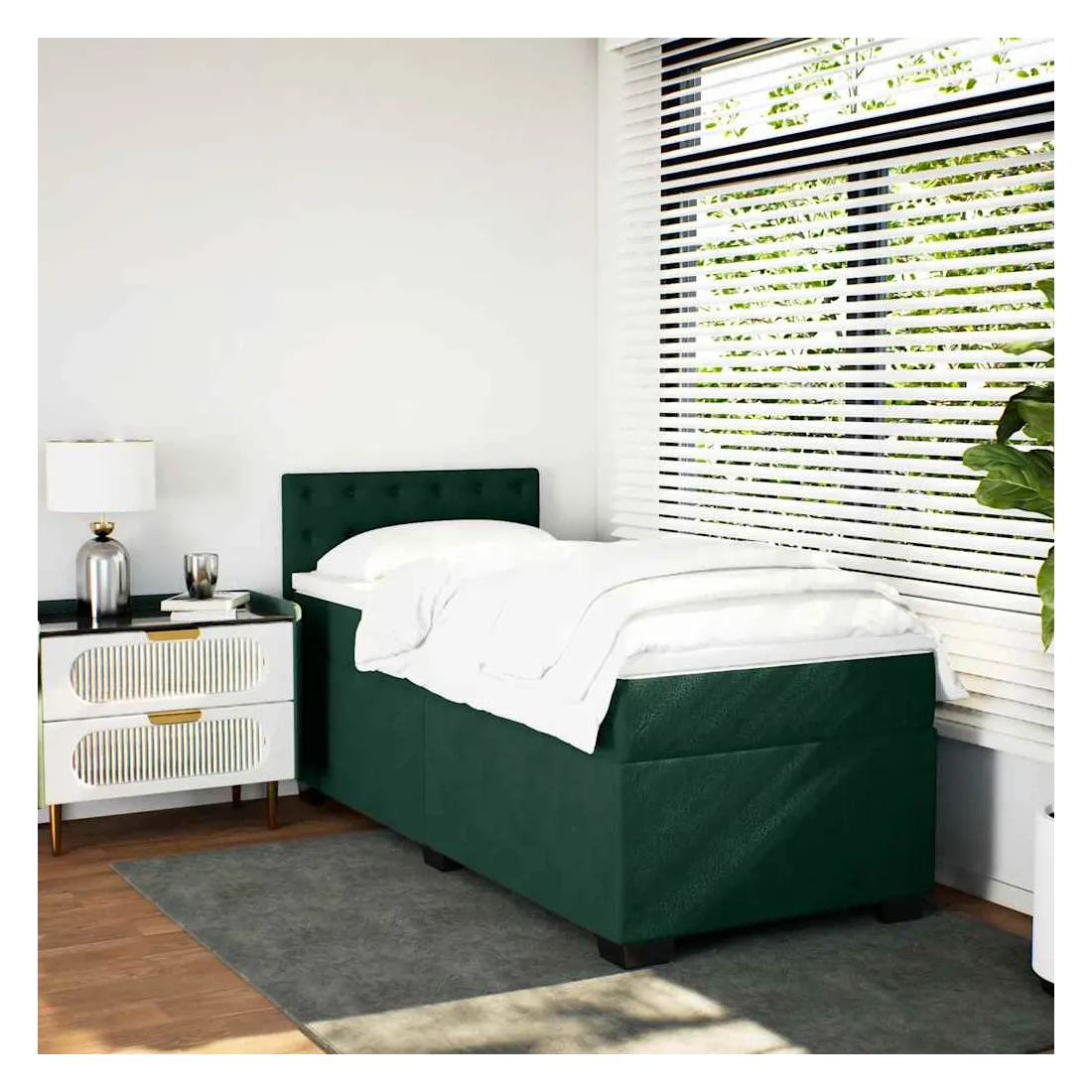 Utilisez ce lit à sommier pour profiter d'une nuit de sommeil réparatrice ! Il vous offre une relaxation maximale et un sommeil agréable. Velours doux : le velours est un tissu doux et luxueux qui se reconnaît à son tas dense de fibres uniformément coupées qui ont une touche lisse. Le tissu en velours présente un toucher doux distinctif, ce qui le rend confortable au toucher.Matelas à ressorts ensachés : ce matelas à ressorts ensachés comporte des ressorts ensachés individuels qui fonctionnent indépendamment pour offrir un soutien personnalisé en réagissant uniquement à la pression exercée dans chaque zone. Cette conception empêche « l'enroulement » et réduit le transfert de mouvement par rapport aux matelas traditionnels à ressorts ouverts. Chaque ressort ensaché soutient le corps individuellement.Surmatelas confortable : ce surmatelas améliore le soutien et le confort grâce à sa surface douce et respirante, tout en prolongeant la durée de vie de votre matelas. Sa housse amovible permet un lavage facile, ce qui facilite l'entretien.Excellent soutien : la tête de lit vous offre un excellent soutien du dos lorsque vous êtes assis dans votre lit pour lire ou regarder la télévision.Pieds stables et durables : ce lit est soutenu par des pieds robustes, ce qui garantit sa stabilité, sa sécurité et sa fermeté. Bon à savoir :Pour des raisons d'hygiène, le matelas ne peut pas être retourné si l'emballage est retiré ou ouvert.