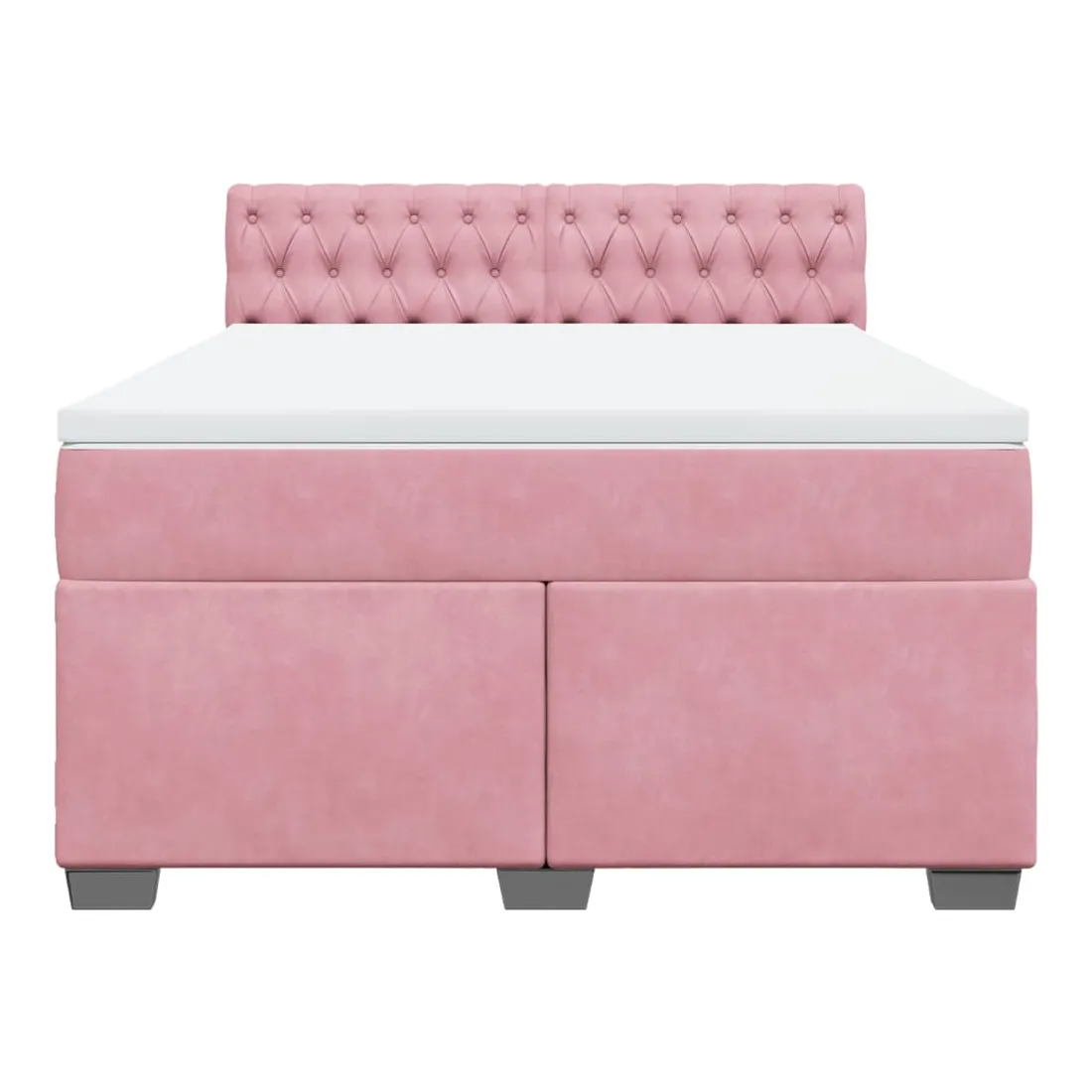 Sommier à lattes de lit et matelas rose foncé 140x200cm velours