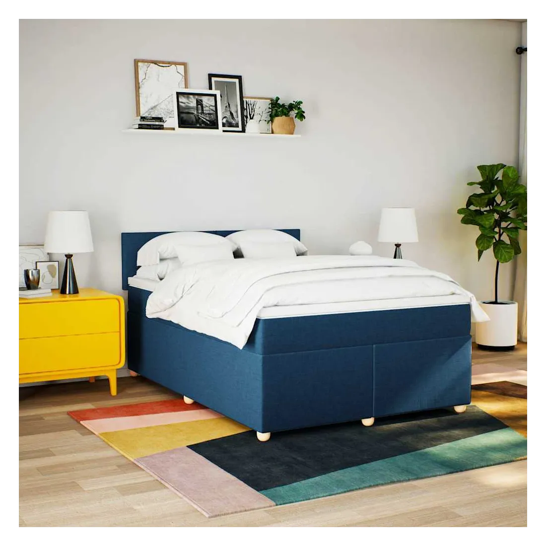 Sommier à lattes de lit avec matelas Bleu 140x190 cm Tissu