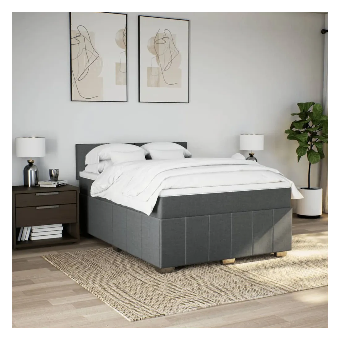Sommier à lattes de lit avec matelas Gris foncé 140x200cm Tissu