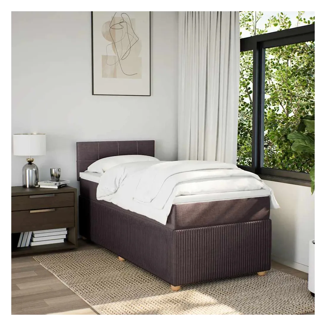 Utilisez ce lit à sommier pour profiter d'une nuit de sommeil réparatrice ! Il vous offre une relaxation maximale et un sommeil agréable. Matériau doux et durable : le tissu en polyester allie douceur, respirabilité et durabilité, vous garantissant un confort et une convivialité ultimes.Matelas à ressorts ensachés : ce matelas à ressorts ensachés comporte des ressorts ensachés individuels qui fonctionnent indépendamment pour offrir un soutien personnalisé en réagissant uniquement à la pression exercée dans chaque zone. Cette conception empêche « l'enroulement » et réduit le transfert de mouvement par rapport aux matelas traditionnels à ressorts ouverts. Chaque ressort ensaché soutient le corps individuellement.Surmatelas confortable : ce surmatelas améliore le soutien et le confort grâce à sa surface douce et respirante, tout en prolongeant la durée de vie de votre matelas. Sa housse amovible permet un lavage facile, ce qui facilite l'entretien.Lattes pour un soutien optimal : le cadre de lit est complété par des lattes pour offrir un soutien et une respirabilité essentiels à votre matelas. Bon à savoir :Pour des raisons d'hygiène, le matelas ne peut pas être retourné si l'emballage est retiré ou ouvert.