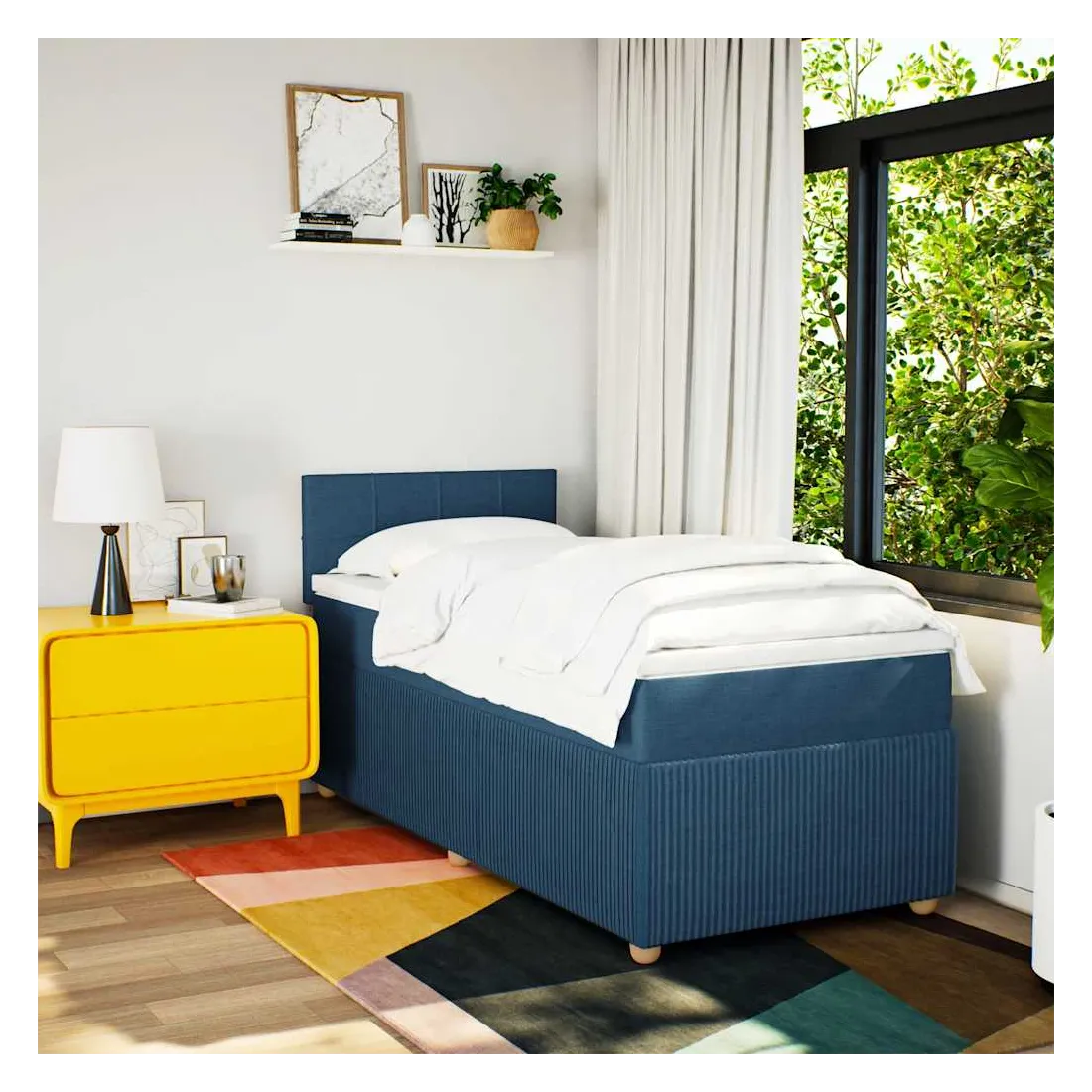 Utilisez ce lit à sommier pour profiter d'une nuit de sommeil réparatrice ! Il vous offre une relaxation maximale et un sommeil agréable. Matériau doux et durable : le tissu en polyester allie douceur, respirabilité et durabilité, vous garantissant un confort et une convivialité ultimes.Matelas à ressorts ensachés : ce matelas à ressorts ensachés comporte des ressorts ensachés individuels qui fonctionnent indépendamment pour offrir un soutien personnalisé en réagissant uniquement à la pression exercée dans chaque zone. Cette conception empêche « l'enroulement » et réduit le transfert de mouvement par rapport aux matelas traditionnels à ressorts ouverts. Chaque ressort ensaché soutient le corps individuellement.Surmatelas confortable : ce surmatelas améliore le soutien et le confort grâce à sa surface douce et respirante, tout en prolongeant la durée de vie de votre matelas. Sa housse amovible permet un lavage facile, ce qui facilite l'entretien.Lattes pour un soutien optimal : le cadre de lit est complété par des lattes pour offrir un soutien et une respirabilité essentiels à votre matelas. Bon à savoir :Pour des raisons d'hygiène, le matelas ne peut pas être retourné si l'emballage est retiré ou ouvert.