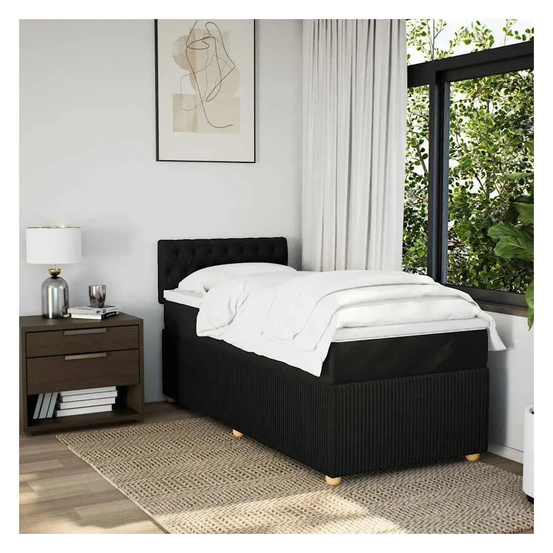 Utilisez ce lit à sommier pour profiter d'une nuit de sommeil réparatrice ! Il vous offre une relaxation maximale et un sommeil agréable. Matériau doux et durable : le tissu en polyester allie douceur, respirabilité et durabilité, vous garantissant un confort et une convivialité ultimes.Matelas à ressorts ensachés : ce matelas à ressorts ensachés comporte des ressorts ensachés individuels qui fonctionnent indépendamment pour offrir un soutien personnalisé en réagissant uniquement à la pression exercée dans chaque zone. Cette conception empêche « l'enroulement » et réduit le transfert de mouvement par rapport aux matelas traditionnels à ressorts ouverts. Chaque ressort ensaché soutient le corps individuellement.Surmatelas confortable : ce surmatelas améliore le soutien et le confort grâce à sa surface douce et respirante, tout en prolongeant la durée de vie de votre matelas. Sa housse amovible permet un lavage facile, ce qui facilite l'entretien.Lattes pour un soutien optimal : le cadre de lit est complété par des lattes pour offrir un soutien et une respirabilité essentiels à votre matelas. Bon à savoir :Pour des raisons d'hygiène, le matelas ne peut pas être retourné si l'emballage est retiré ou ouvert.