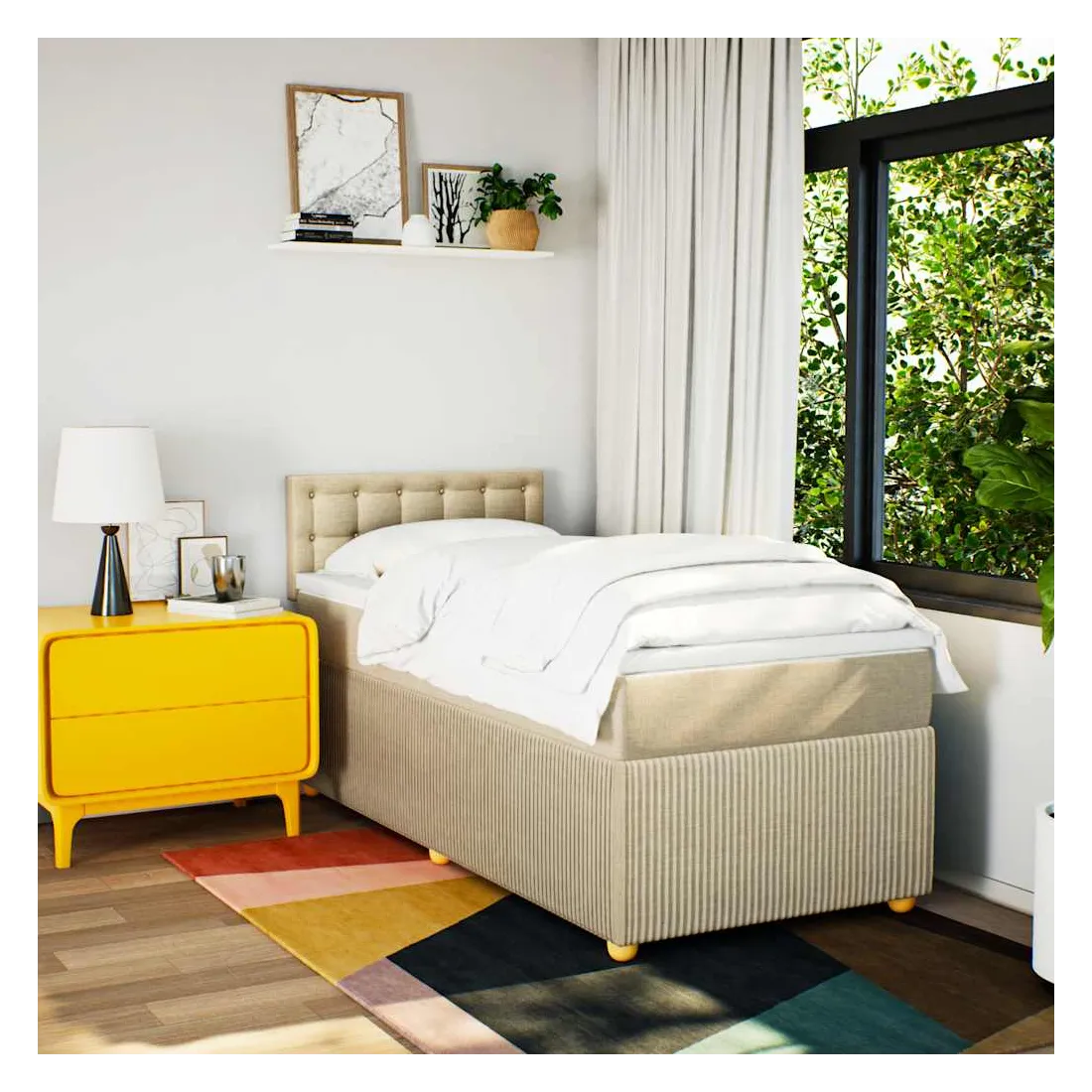 Utilisez ce lit à sommier pour profiter d'une nuit de sommeil réparatrice ! Il vous offre une relaxation maximale et un sommeil agréable. Matériau doux et durable : le tissu en polyester allie douceur, respirabilité et durabilité, vous garantissant un confort et une convivialité ultimes.Matelas à ressorts ensachés : ce matelas à ressorts ensachés comporte des ressorts ensachés individuels qui fonctionnent indépendamment pour offrir un soutien personnalisé en réagissant uniquement à la pression exercée dans chaque zone. Cette conception empêche « l'enroulement » et réduit le transfert de mouvement par rapport aux matelas traditionnels à ressorts ouverts. Chaque ressort ensaché soutient le corps individuellement.Surmatelas confortable : ce surmatelas améliore le soutien et le confort grâce à sa surface douce et respirante, tout en prolongeant la durée de vie de votre matelas. Sa housse amovible permet un lavage facile, ce qui facilite l'entretien.Lattes pour un soutien optimal : le cadre de lit est complété par des lattes pour offrir un soutien et une respirabilité essentiels à votre matelas. Bon à savoir :Pour des raisons d'hygiène, le matelas ne peut pas être retourné si l'emballage est retiré ou ouvert.