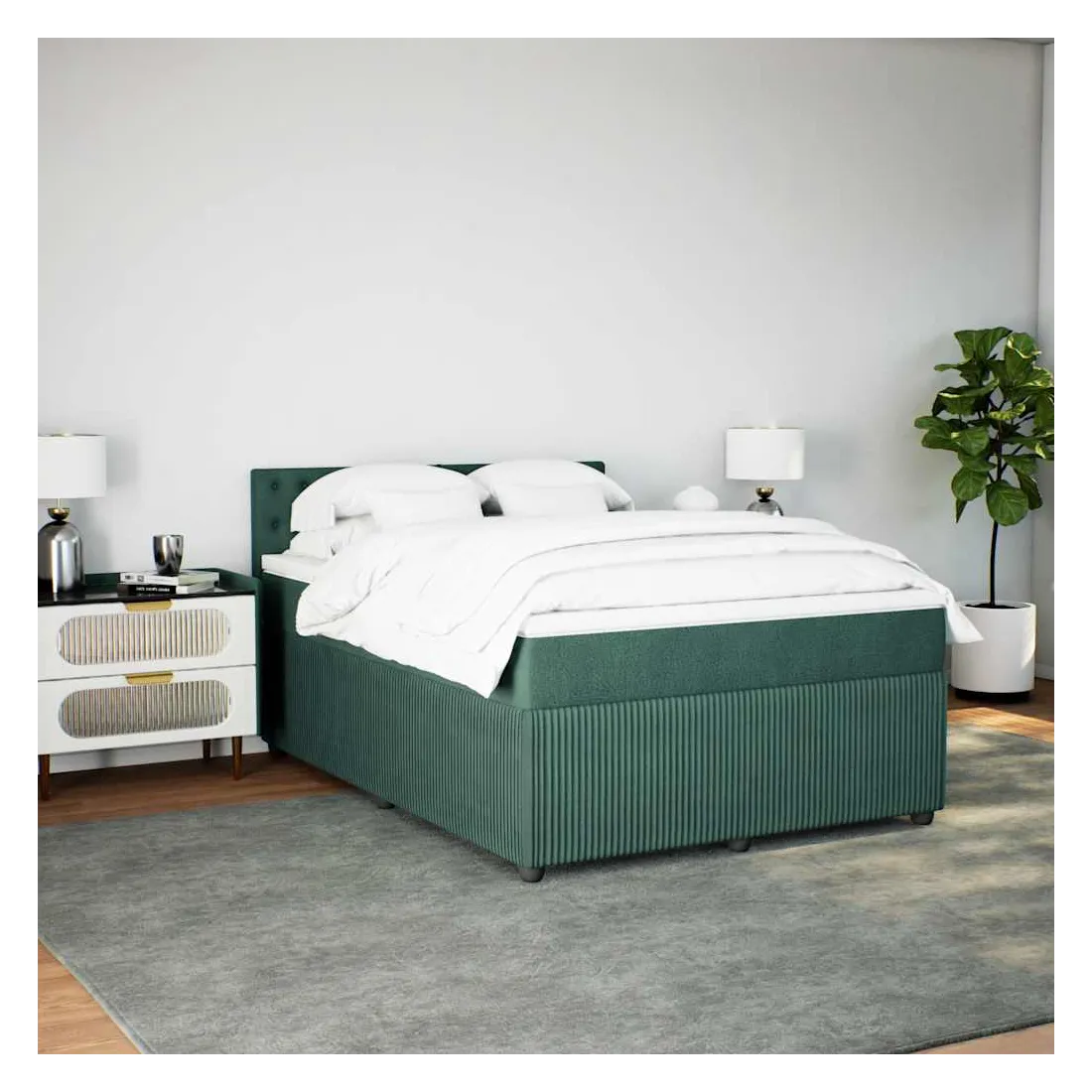 Sommier à lattes de lit et matelas Vert foncé 140x190cm Velours