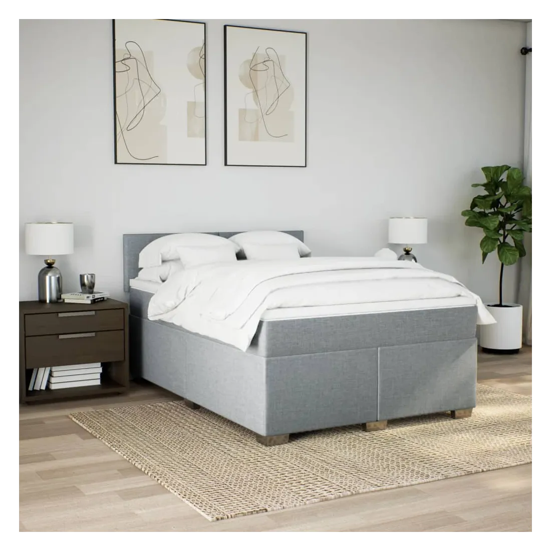 Sommier à lattes de lit avec matelas Gris clair 140x200cm Tissu