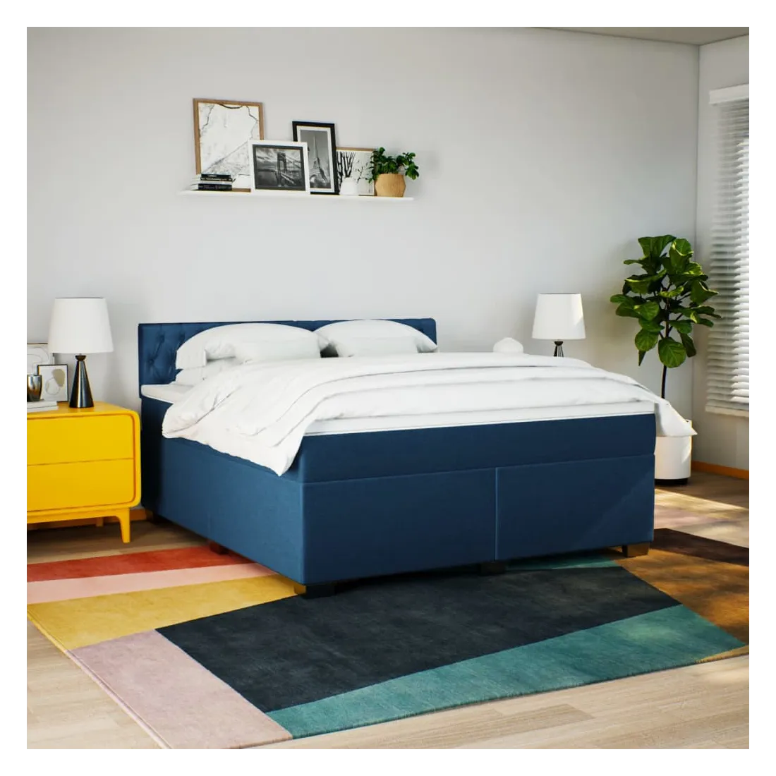 Sommier à lattes de lit avec matelas Bleu 180x200 cm Tissu