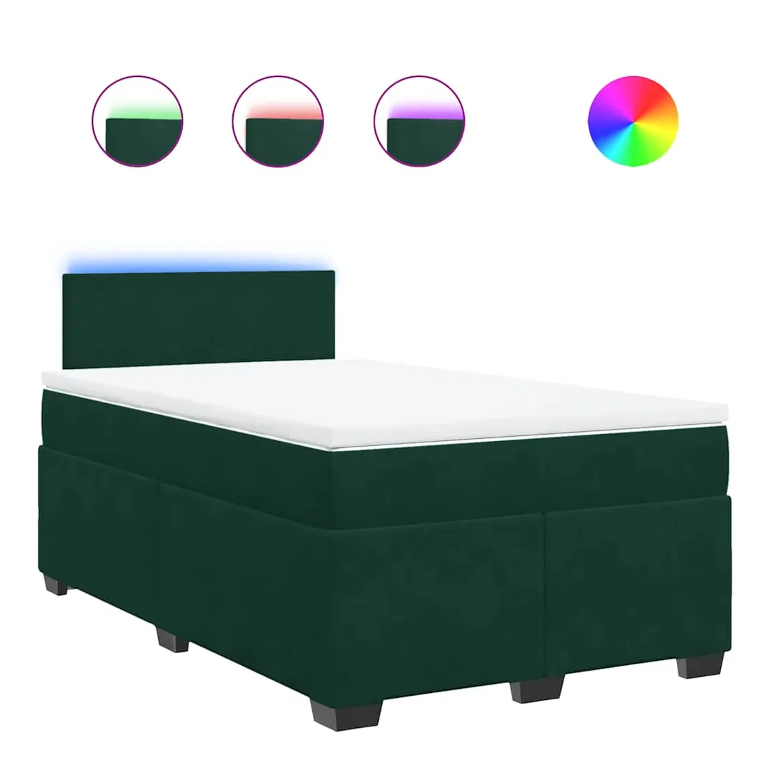 Utilisez ce lit à sommier pour profiter d'une nuit de sommeil réparatrice ! Il vous offre une relaxation maximale et un sommeil agréable. Matériau doux et confortable : le tissu en velours présente une surface douce et lisse qui offre une sensation agréable contre la peau, vous apportant chaleur et confort ultime.Matelas à ressorts ensachés : ce matelas à ressorts ensachés comporte des ressorts ensachés individuels qui fonctionnent indépendamment pour offrir un soutien personnalisé en réagissant uniquement à la pression exercée dans chaque zone. Cette conception empêche « l'enroulement » et réduit le transfert de mouvement par rapport aux matelas traditionnels à ressorts ouverts. Chaque ressort ensaché soutient le corps individuellement.Lumières LED pour une ambiance agréable : ce lit est équipé de lumières LED qui peuvent être facilement réglées pour créer un spectacle lumineux personnalisé. Vous pouvez personnaliser les modes, les couleurs et la luminosité pour améliorer l'ambiance de votre espace intérieur.Surmatelas confortable : ce surmatelas améliore le soutien et le confort grâce à sa surface douce et respirante, tout en prolongeant la durée de vie de votre matelas. Sa housse amovible permet un lavage facile, ce qui facilite l'entretien. Bon à savoir :Ce produit est doté d'un connecteur USB qui nécessite une source d'alimentation USB de 5V certifiée (non incluse).Pour des raisons d'hygiène, le matelas ne peut pas être retourné si l'emballage est retiré ou ouvert.Seule la partie avec un symbole de ciseaux peut être coupée et seule la partie avec l'USB continuera à fonctionner comme avant.