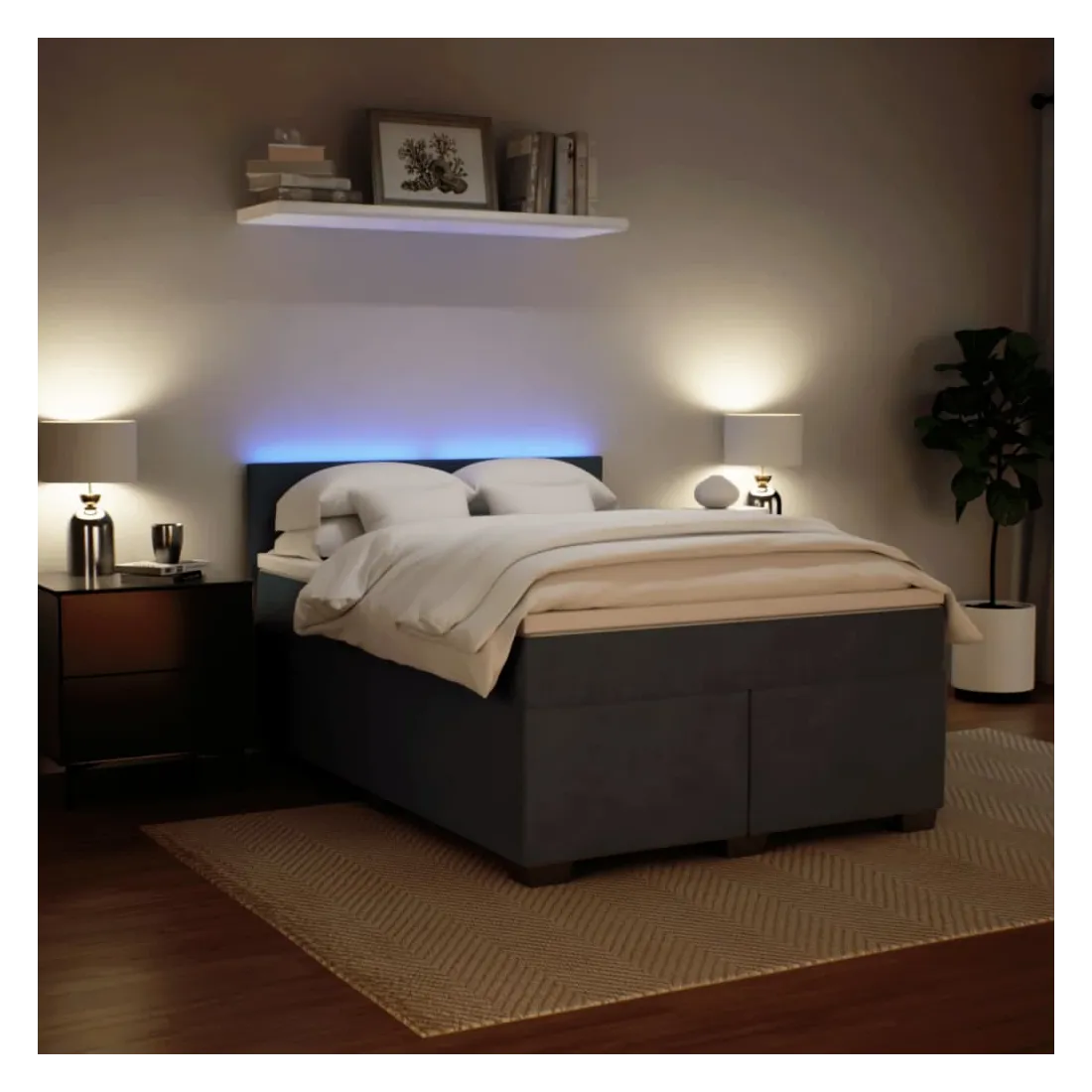 vidaXLUtilisez ce lit à sommier pour profiter d'une nuit de sommeil réparatrice ! Il vous offre une relaxation maximale et un sommeil agréable. Matériau doux et confortable : le tissu en velours présente une surface douce et lisse qui offre une sensation agréable contre la peau, vous apportant chaleur et confort ultime.Matelas à ressorts ensachés : ce matelas à ressorts ensachés comporte des ressorts ensachés individuels qui fonctionnent indépendamment pour offrir un soutien personnalisé en réagissant uniquement à la pression exercée dans chaque zone. Cette conception empêche « l'enroulement » et réduit le transfert de mouvement par rapport aux matelas traditionnels à ressorts ouverts. Chaque ressort ensaché soutient le corps individuellement.Lumières LED pour une ambiance agréable : ce lit est équipé de lumières LED qui peuvent être facilement réglées pour créer un spectacle lumineux personnalisé. Vous pouvez personnaliser les modes, les couleurs et la luminosité pour améliorer l'ambiance de votre espace intérieur.Surmatelas confortable : ce surmatelas améliore le soutien et le confort grâce à sa surface douce et respirante, tout en prolongeant la durée de vie de votre matelas. Sa housse amovible permet un lavage facile, ce qui facilite l'entretien. Bon à savoir :Ce produit est doté d'un connecteur USB qui nécessite une source d'alimentation USB de 5V certifiée (non incluse).Pour des raisons d'hygiène, le matelas ne peut pas être retourné si l'emballage est retiré ou ouvert.Seule la partie avec un symbole de ciseaux peut être coupée et seule la partie avec l'USB continuera à fonctionner comme avant.