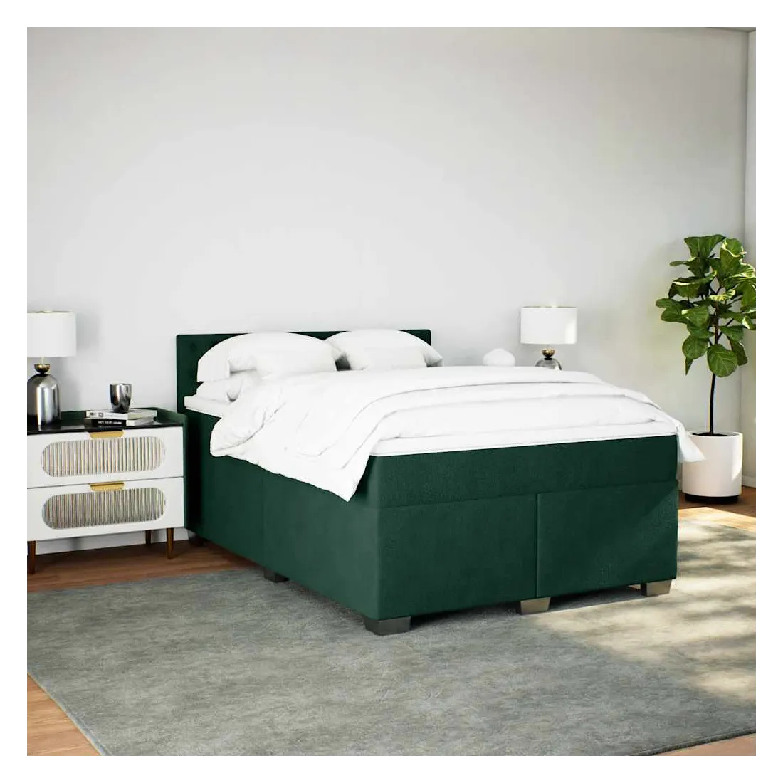 Sommier à lattes de lit et matelas Vert foncé 140x190cm Velours