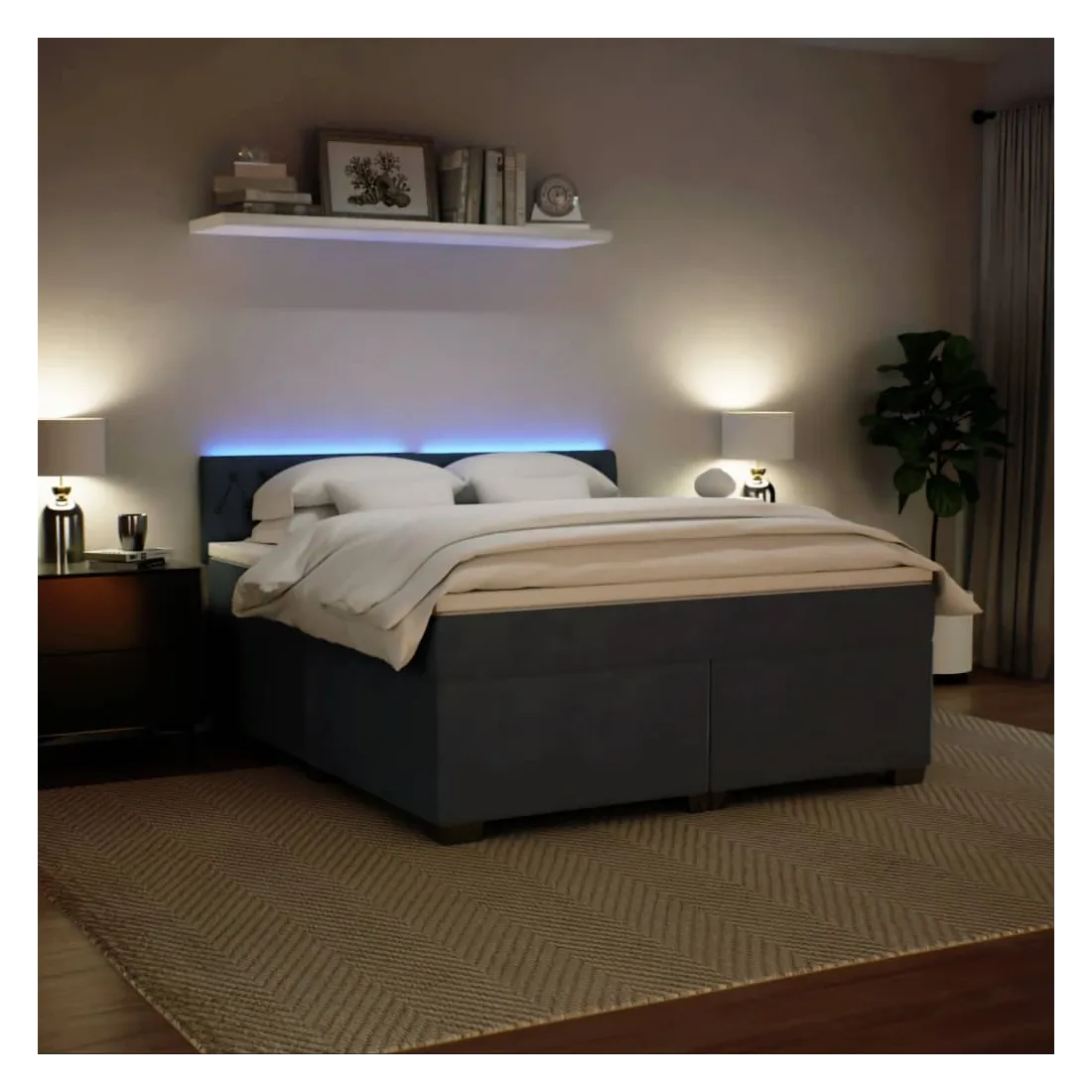 vidaXLUtilisez ce lit à sommier pour profiter d'une nuit de sommeil réparatrice ! Il vous offre une relaxation maximale et un sommeil agréable. Matériau doux et confortable : le tissu en velours présente une surface douce et lisse qui offre une sensation agréable contre la peau, vous apportant chaleur et confort ultime.Matelas à ressorts ensachés : ce matelas à ressorts ensachés comporte des ressorts ensachés individuels qui fonctionnent indépendamment pour offrir un soutien personnalisé en réagissant uniquement à la pression exercée dans chaque zone. Cette conception empêche « l'enroulement » et réduit le transfert de mouvement par rapport aux matelas traditionnels à ressorts ouverts. Chaque ressort ensaché soutient le corps individuellement.Lumières LED pour une ambiance agréable : ce lit est équipé de lumières LED qui peuvent être facilement réglées pour créer un spectacle lumineux personnalisé. Vous pouvez personnaliser les modes, les couleurs et la luminosité pour améliorer l'ambiance de votre espace intérieur.Surmatelas confortable : ce surmatelas améliore le soutien et le confort grâce à sa surface douce et respirante, tout en prolongeant la durée de vie de votre matelas. Sa housse amovible permet un lavage facile, ce qui facilite l'entretien. Bon à savoir :Ce produit est doté d'un connecteur USB qui nécessite une source d'alimentation USB de 5V certifiée (non incluse).Pour des raisons d'hygiène, le matelas ne peut pas être retourné si l'emballage est retiré ou ouvert.Seule la partie avec un symbole de ciseaux peut être coupée et seule la partie avec l'USB continuera à fonctionner comme avant.