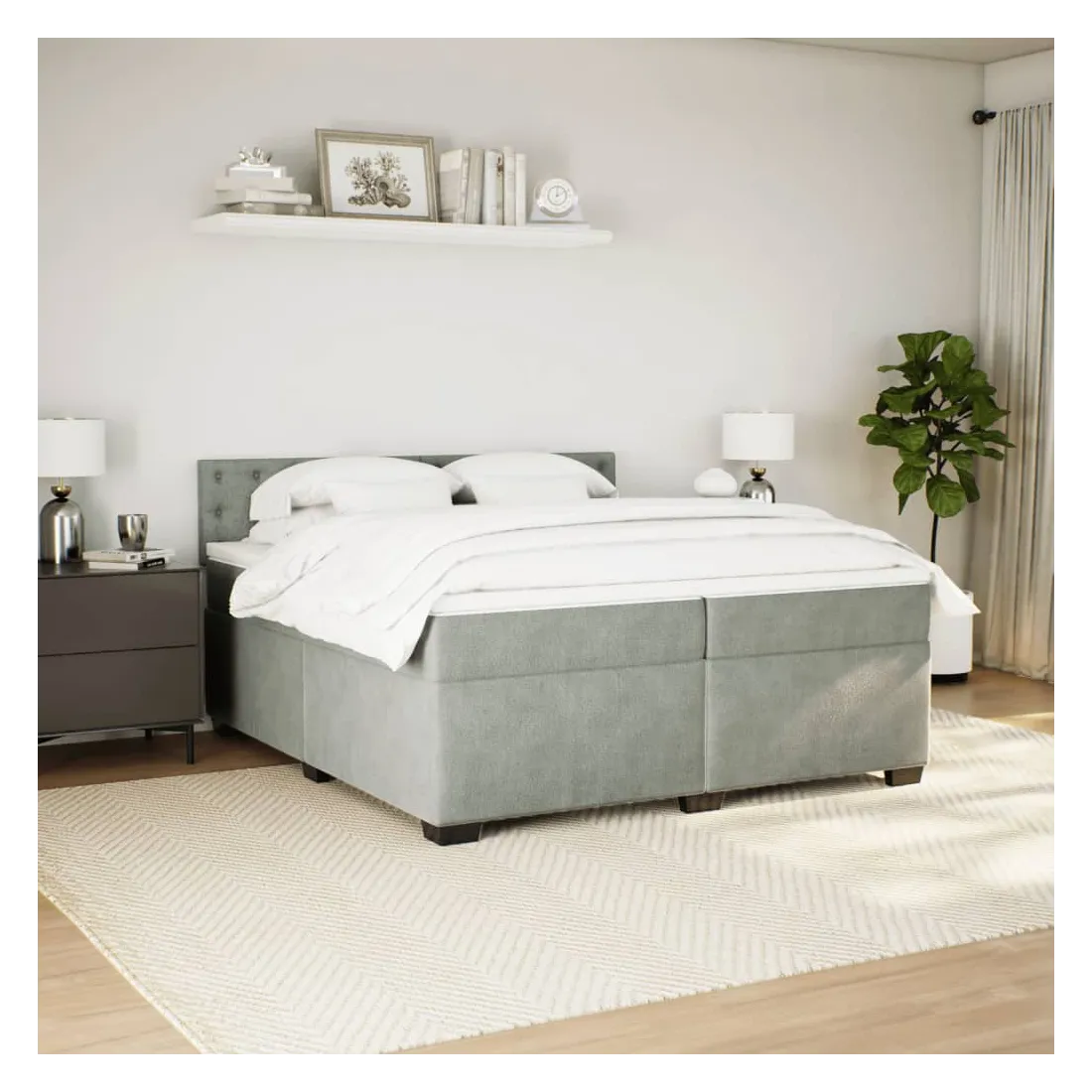Sommier à lattes de lit et matelas Gris clair 200x200cm Velours