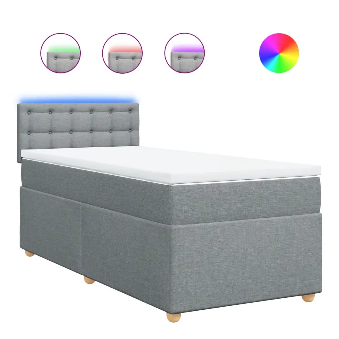 Utilisez ce lit à sommier pour profiter d'une nuit de sommeil réparatrice ! Il vous offre une relaxation maximale et un sommeil agréable. Matériau doux et durable : le tissu en polyester allie douceur, respirabilité et durabilité, vous garantissant un confort et une convivialité ultimes.Matelas à ressorts ensachés : ce matelas à ressorts ensachés comporte des ressorts ensachés individuels qui fonctionnent indépendamment pour offrir un soutien personnalisé en réagissant uniquement à la pression exercée dans chaque zone. Cette conception empêche « l'enroulement » et réduit le transfert de mouvement par rapport aux matelas traditionnels à ressorts ouverts. Chaque ressort ensaché soutient le corps individuellement.Lumières LED pour une ambiance agréable : ce lit est équipé de lumières LED qui peuvent être facilement réglées pour créer un spectacle lumineux personnalisé. Vous pouvez personnaliser les modes, les couleurs et la luminosité pour améliorer l'ambiance de votre espace intérieur.Surmatelas confortable : ce surmatelas améliore le soutien et le confort grâce à sa surface douce et respirante, tout en prolongeant la durée de vie de votre matelas. Sa housse amovible permet un lavage facile, ce qui facilite l'entretien. Bon à savoir :Ce produit est doté d'un connecteur USB qui nécessite une source d'alimentation USB de 5V certifiée (non incluse).Pour des raisons d'hygiène, le matelas ne peut pas être retourné si l'emballage est retiré ou ouvert.Seule la partie avec un symbole de ciseaux peut être coupée et seule la partie avec l'USB continuera à fonctionner comme avant.