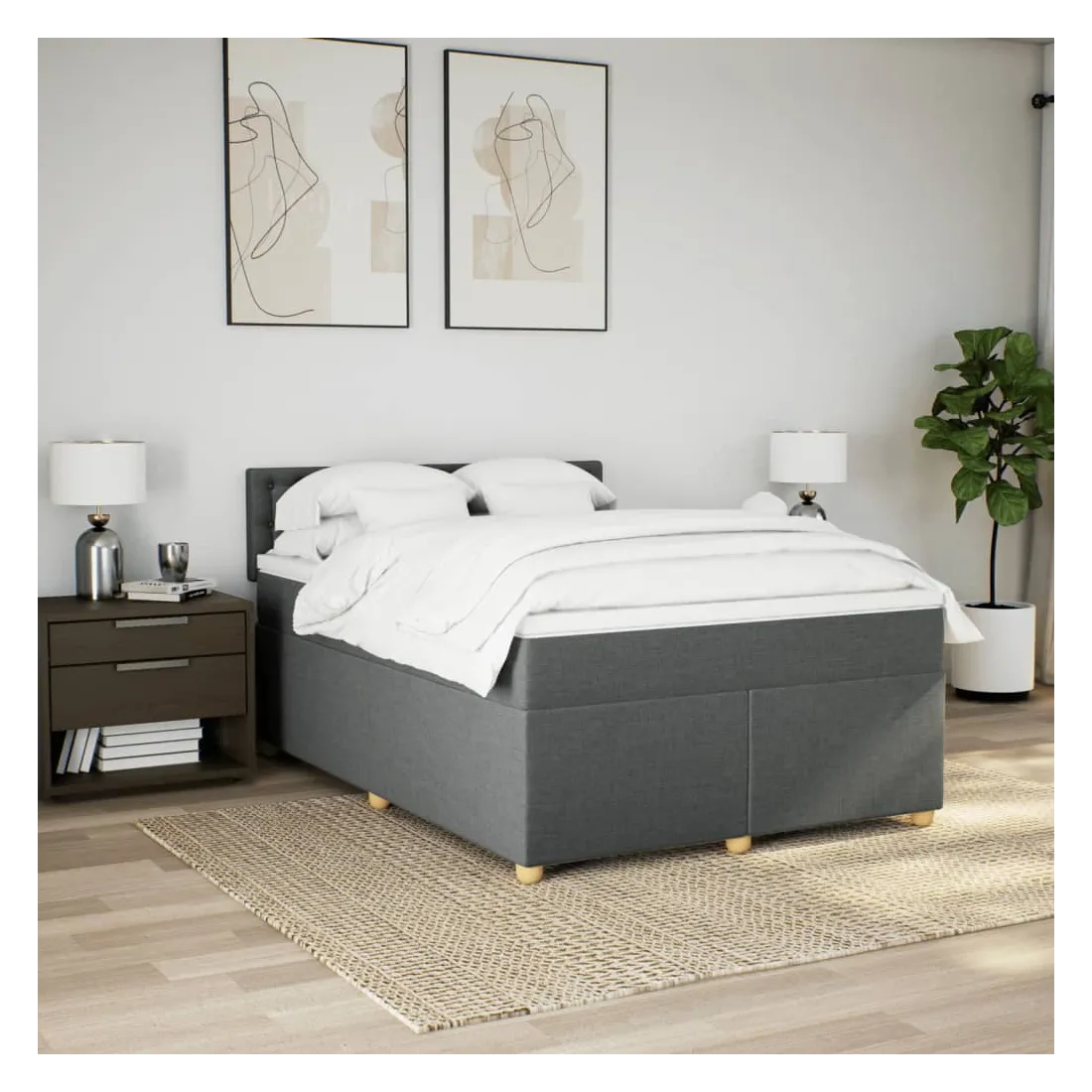Sommier à lattes de lit avec matelas Gris foncé 160x200cm Tissu