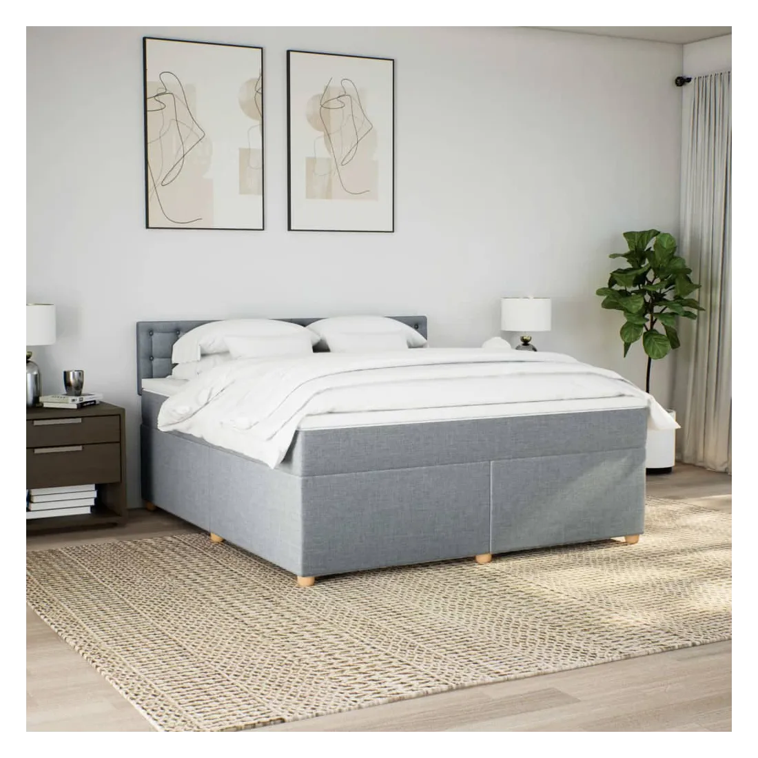 Sommier à lattes de lit avec matelas Gris clair 180x200cm Tissu