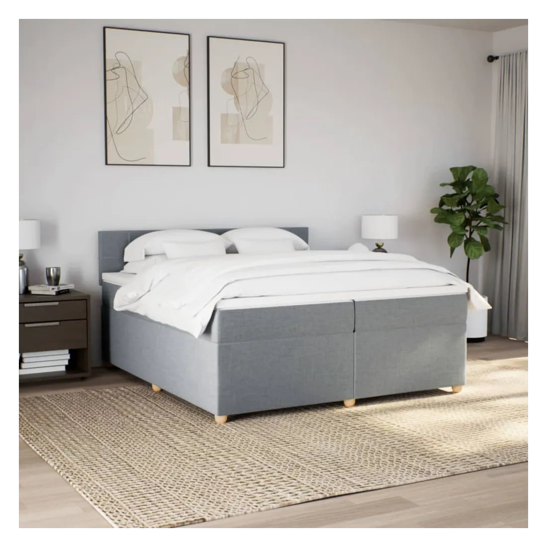 Sommier à lattes de lit avec matelas Gris clair 200x200cm Tissu