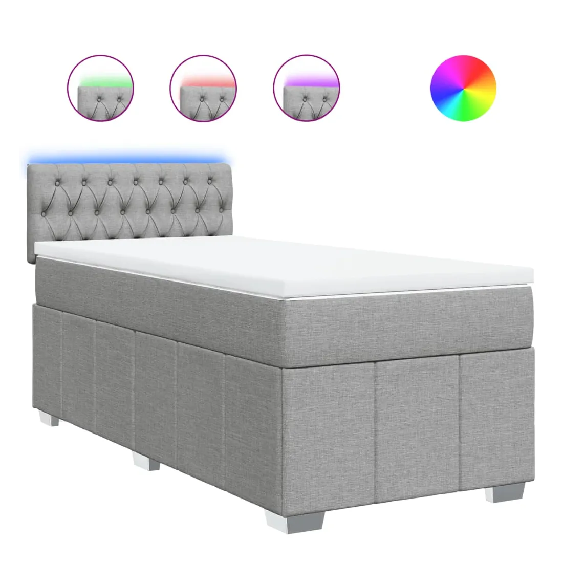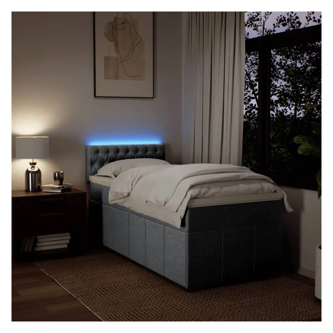 Utilisez ce lit à sommier pour profiter d'une nuit de sommeil réparatrice ! Il vous offre une relaxation maximale et un sommeil agréable. Matériau doux et durable : le tissu en polyester allie douceur, respirabilité et durabilité, vous garantissant un confort et une convivialité ultimes.Matelas à ressorts ensachés : ce matelas à ressorts ensachés comporte des ressorts ensachés individuels qui fonctionnent indépendamment pour offrir un soutien personnalisé en réagissant uniquement à la pression exercée dans chaque zone. Cette conception empêche « l'enroulement » et réduit le transfert de mouvement par rapport aux matelas traditionnels à ressorts ouverts. Chaque ressort ensaché soutient le corps individuellement.Lumières LED pour une ambiance agréable : ce lit est équipé de lumières LED qui peuvent être facilement réglées pour créer un spectacle lumineux personnalisé. Vous pouvez personnaliser les modes, les couleurs et la luminosité pour améliorer l'ambiance de votre espace intérieur.Surmatelas confortable : ce surmatelas améliore le soutien et le confort grâce à sa surface douce et respirante, tout en prolongeant la durée de vie de votre matelas. Sa housse amovible permet un lavage facile, ce qui facilite l'entretien. Bon à savoir :Ce produit est doté d'un connecteur USB qui nécessite une source d'alimentation USB de 5V certifiée (non incluse).Pour des raisons d'hygiène, le matelas ne peut pas être retourné si l'emballage est retiré ou ouvert.Seule la partie avec un symbole de ciseaux peut être coupée et seule la partie avec l'USB continuera à fonctionner comme avant.
