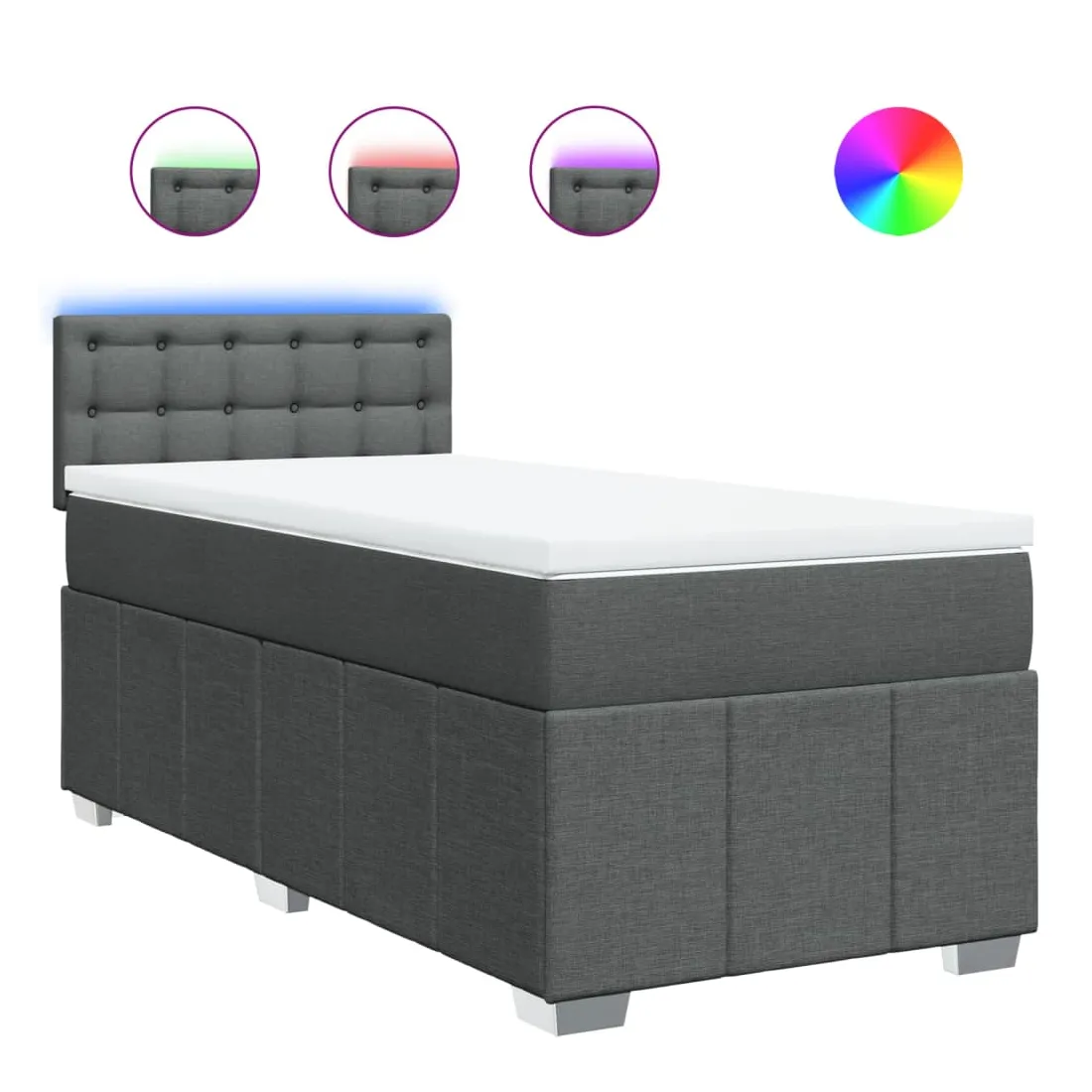 Utilisez ce lit à sommier pour profiter d'une nuit de sommeil réparatrice ! Il vous offre une relaxation maximale et un sommeil agréable. Matériau doux et durable : le tissu en polyester allie douceur, respirabilité et durabilité, vous garantissant un confort et une convivialité ultimes.Matelas à ressorts ensachés : ce matelas à ressorts ensachés comporte des ressorts ensachés individuels qui fonctionnent indépendamment pour offrir un soutien personnalisé en réagissant uniquement à la pression exercée dans chaque zone. Cette conception empêche « l'enroulement » et réduit le transfert de mouvement par rapport aux matelas traditionnels à ressorts ouverts. Chaque ressort ensaché soutient le corps individuellement.Lumières LED pour une ambiance agréable : ce lit est équipé de lumières LED qui peuvent être facilement réglées pour créer un spectacle lumineux personnalisé. Vous pouvez personnaliser les modes, les couleurs et la luminosité pour améliorer l'ambiance de votre espace intérieur.Surmatelas confortable : ce surmatelas améliore le soutien et le confort grâce à sa surface douce et respirante, tout en prolongeant la durée de vie de votre matelas. Sa housse amovible permet un lavage facile, ce qui facilite l'entretien. Bon à savoir :Ce produit est doté d'un connecteur USB qui nécessite une source d'alimentation USB de 5V certifiée (non incluse).Pour des raisons d'hygiène, le matelas ne peut pas être retourné si l'emballage est retiré ou ouvert.Seule la partie avec un symbole de ciseaux peut être coupée et seule la partie avec l'USB continuera à fonctionner comme avant.