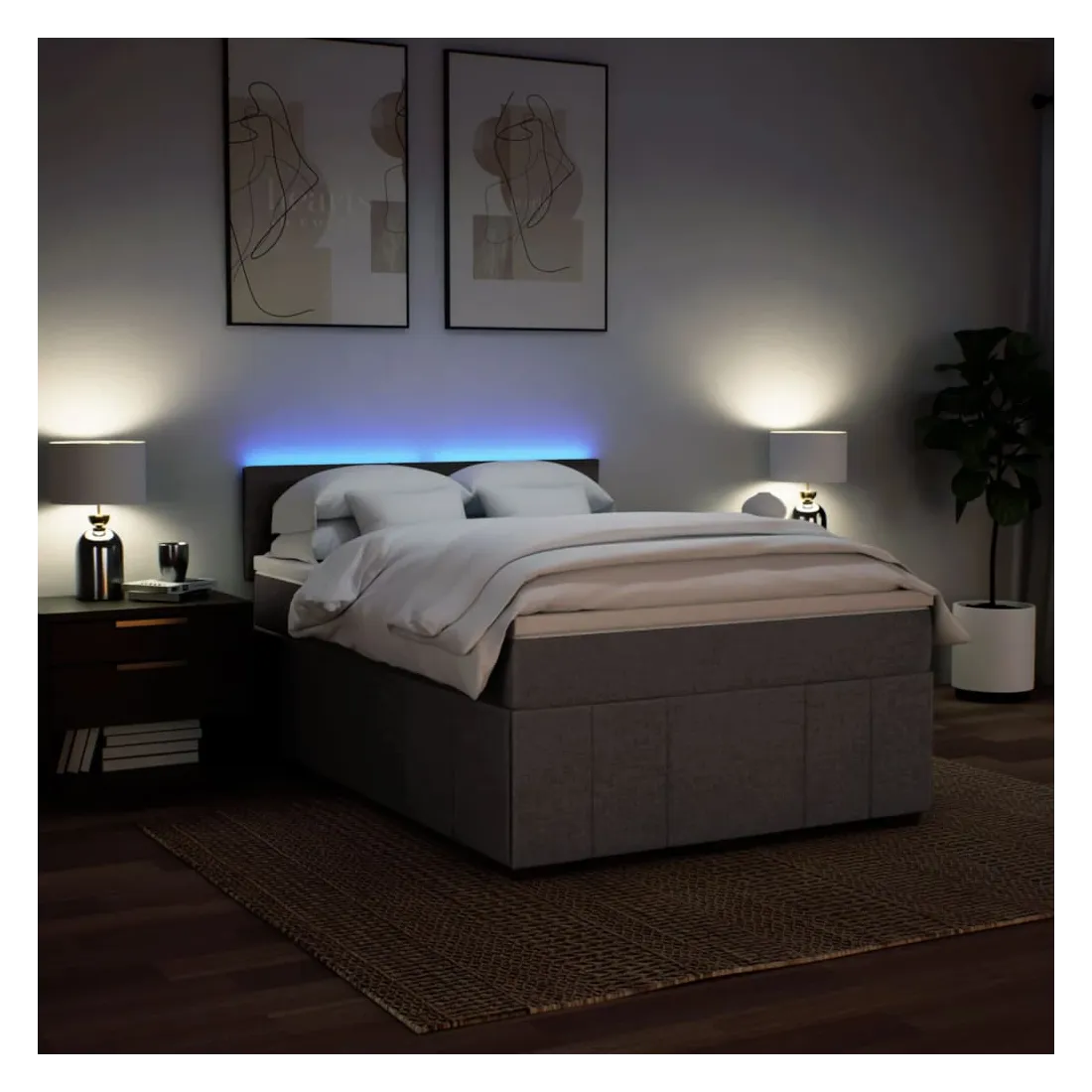 Utilisez ce lit à sommier pour profiter d'une nuit de sommeil réparatrice ! Il vous offre une relaxation maximale et un sommeil agréable. Matériau doux et durable : le tissu en polyester allie douceur, respirabilité et durabilité, vous garantissant un confort et une convivialité ultimes.Matelas à ressorts ensachés : ce matelas à ressorts ensachés comporte des ressorts ensachés individuels qui fonctionnent indépendamment pour offrir un soutien personnalisé en réagissant uniquement à la pression exercée dans chaque zone. Cette conception empêche « l'enroulement » et réduit le transfert de mouvement par rapport aux matelas traditionnels à ressorts ouverts. Chaque ressort ensaché soutient le corps individuellement.Lumières LED pour une ambiance agréable : ce lit est équipé de lumières LED qui peuvent être facilement réglées pour créer un spectacle lumineux personnalisé. Vous pouvez personnaliser les modes, les couleurs et la luminosité pour améliorer l'ambiance de votre espace intérieur.Surmatelas confortable : ce surmatelas améliore le soutien et le confort grâce à sa surface douce et respirante, tout en prolongeant la durée de vie de votre matelas. Sa housse amovible permet un lavage facile, ce qui facilite l'entretien. Bon à savoir :Ce produit est doté d'un connecteur USB qui nécessite une source d'alimentation USB de 5V certifiée (non incluse).Pour des raisons d'hygiène, le matelas ne peut pas être retourné si l'emballage est retiré ou ouvert.Seule la partie avec un symbole de ciseaux peut être coupée et seule la partie avec l'USB continuera à fonctionner comme avant.