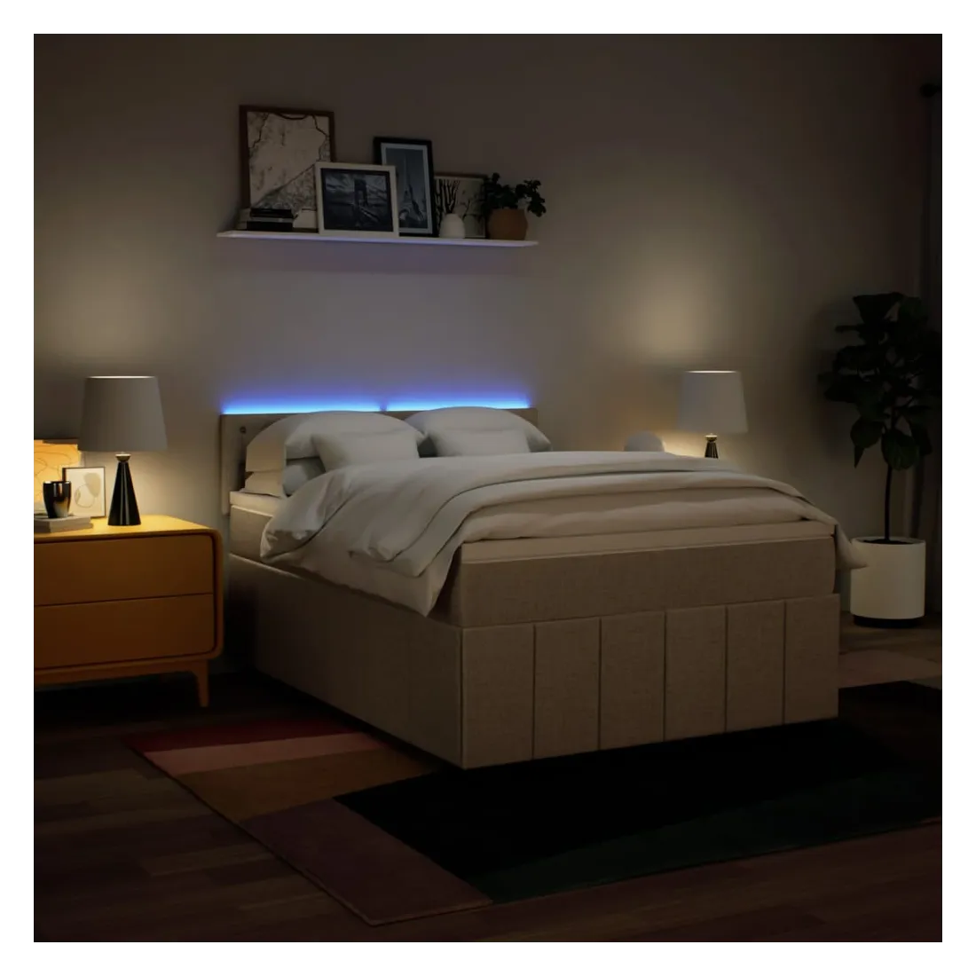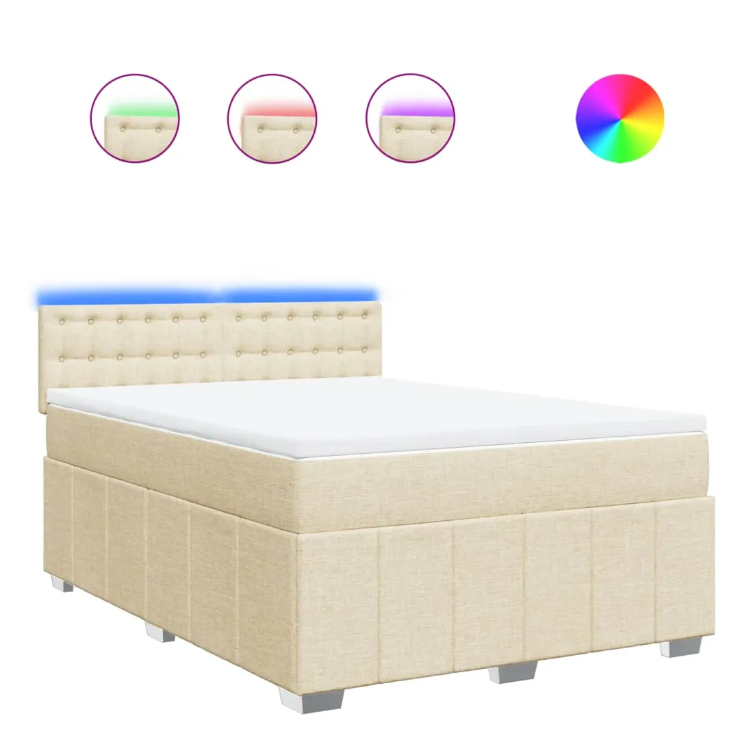 Utilisez ce lit à sommier pour profiter d'une nuit de sommeil réparatrice ! Il vous offre une relaxation maximale et un sommeil agréable. Matériau doux et durable : le tissu en polyester allie douceur, respirabilité et durabilité, vous garantissant un confort et une convivialité ultimes.Matelas à ressorts ensachés : ce matelas à ressorts ensachés comporte des ressorts ensachés individuels qui fonctionnent indépendamment pour offrir un soutien personnalisé en réagissant uniquement à la pression exercée dans chaque zone. Cette conception empêche « l'enroulement » et réduit le transfert de mouvement par rapport aux matelas traditionnels à ressorts ouverts. Chaque ressort ensaché soutient le corps individuellement.Lumières LED pour une ambiance agréable : ce lit est équipé de lumières LED qui peuvent être facilement réglées pour créer un spectacle lumineux personnalisé. Vous pouvez personnaliser les modes, les couleurs et la luminosité pour améliorer l'ambiance de votre espace intérieur.Surmatelas confortable : ce surmatelas améliore le soutien et le confort grâce à sa surface douce et respirante, tout en prolongeant la durée de vie de votre matelas. Sa housse amovible permet un lavage facile, ce qui facilite l'entretien. Bon à savoir :Ce produit est doté d'un connecteur USB qui nécessite une source d'alimentation USB de 5V certifiée (non incluse).Pour des raisons d'hygiène, le matelas ne peut pas être retourné si l'emballage est retiré ou ouvert.Seule la partie avec un symbole de ciseaux peut être coupée et seule la partie avec l'USB continuera à fonctionner comme avant.