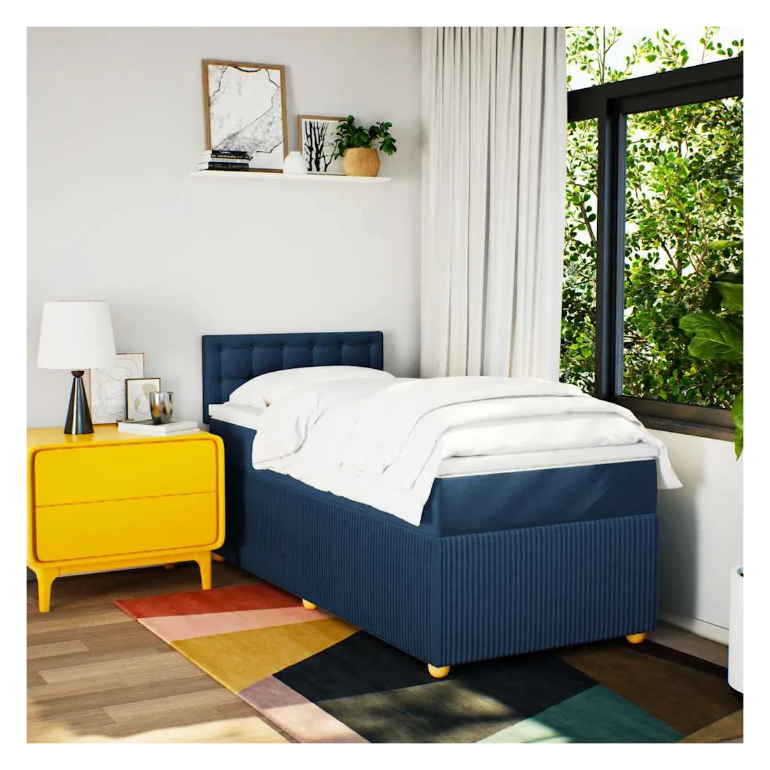 Utilisez ce lit à sommier pour profiter d'une nuit de sommeil réparatrice ! Il vous offre une relaxation maximale et un sommeil agréable. Matériau doux et durable : le tissu en polyester allie douceur, respirabilité et durabilité, vous garantissant un confort et une convivialité ultimes.Matelas à ressorts ensachés : ce matelas à ressorts ensachés comporte des ressorts ensachés individuels qui fonctionnent indépendamment pour offrir un soutien personnalisé en réagissant uniquement à la pression exercée dans chaque zone. Cette conception empêche « l'enroulement » et réduit le transfert de mouvement par rapport aux matelas traditionnels à ressorts ouverts. Chaque ressort ensaché soutient le corps individuellement.Lumières LED pour une ambiance agréable : ce lit est équipé de lumières LED qui peuvent être facilement réglées pour créer un spectacle lumineux personnalisé. Vous pouvez personnaliser les modes, les couleurs et la luminosité pour améliorer l'ambiance de votre espace intérieur.Surmatelas confortable : ce surmatelas améliore le soutien et le confort grâce à sa surface douce et respirante, tout en prolongeant la durée de vie de votre matelas. Sa housse amovible permet un lavage facile, ce qui facilite l'entretien. Bon à savoir :Ce produit est doté d'un connecteur USB qui nécessite une source d'alimentation USB de 5V certifiée (non incluse).Pour des raisons d'hygiène, le matelas ne peut pas être retourné si l'emballage est retiré ou ouvert.Seule la partie avec un symbole de ciseaux peut être coupée et seule la partie avec l'USB continuera à fonctionner comme avant.