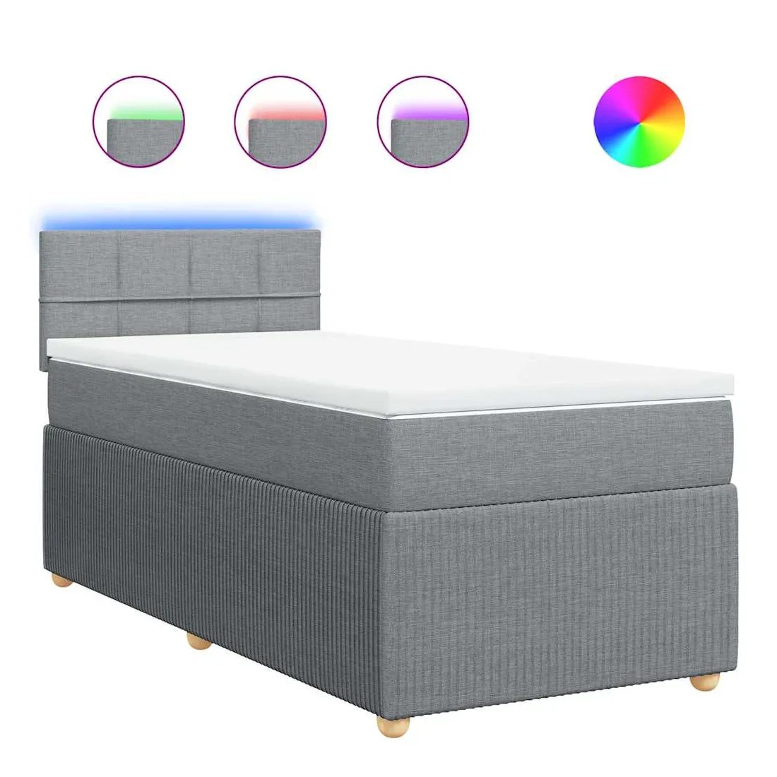 Utilisez ce lit à sommier pour profiter d'une nuit de sommeil réparatrice ! Il vous offre une relaxation maximale et un sommeil agréable. Matériau doux et durable : le tissu en polyester allie douceur, respirabilité et durabilité, vous garantissant un confort et une convivialité ultimes.Matelas à ressorts ensachés : ce matelas à ressorts ensachés comporte des ressorts ensachés individuels qui fonctionnent indépendamment pour offrir un soutien personnalisé en réagissant uniquement à la pression exercée dans chaque zone. Cette conception empêche « l'enroulement » et réduit le transfert de mouvement par rapport aux matelas traditionnels à ressorts ouverts. Chaque ressort ensaché soutient le corps individuellement.Lumières LED pour une ambiance agréable : ce lit est équipé de lumières LED qui peuvent être facilement réglées pour créer un spectacle lumineux personnalisé. Vous pouvez personnaliser les modes, les couleurs et la luminosité pour améliorer l'ambiance de votre espace intérieur.Surmatelas confortable : ce surmatelas améliore le soutien et le confort grâce à sa surface douce et respirante, tout en prolongeant la durée de vie de votre matelas. Sa housse amovible permet un lavage facile, ce qui facilite l'entretien. Bon à savoir :Ce produit est doté d'un connecteur USB qui nécessite une source d'alimentation USB de 5V certifiée (non incluse).Pour des raisons d'hygiène, le matelas ne peut pas être retourné si l'emballage est retiré ou ouvert.Seule la partie avec un symbole de ciseaux peut être coupée et seule la partie avec l'USB continuera à fonctionner comme avant.