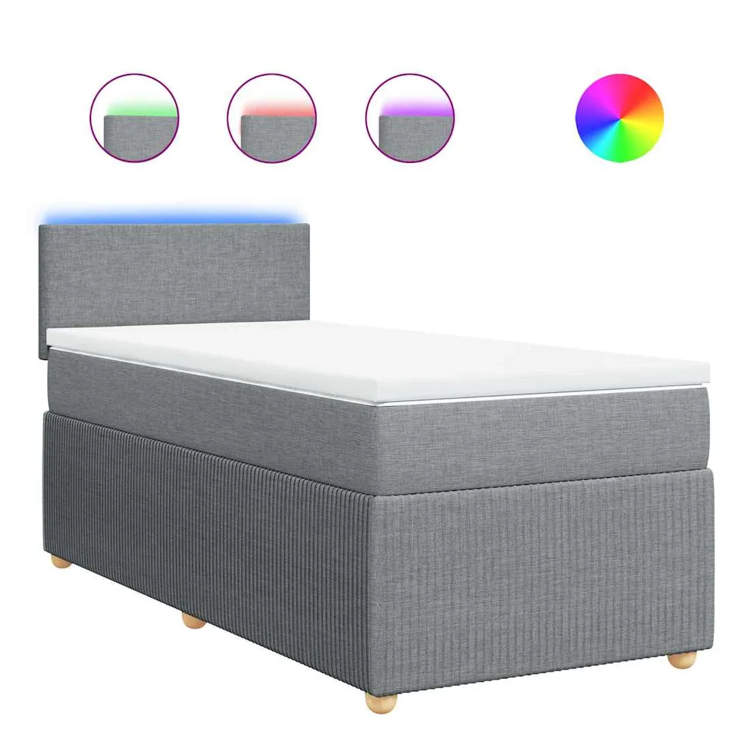 Utilisez ce lit à sommier pour profiter d'une nuit de sommeil réparatrice ! Il vous offre une relaxation maximale et un sommeil agréable. Matériau doux et durable : le tissu en polyester allie douceur, respirabilité et durabilité, vous garantissant un confort et une convivialité ultimes.Matelas à ressorts ensachés : ce matelas à ressorts ensachés comporte des ressorts ensachés individuels qui fonctionnent indépendamment pour offrir un soutien personnalisé en réagissant uniquement à la pression exercée dans chaque zone. Cette conception empêche « l'enroulement » et réduit le transfert de mouvement par rapport aux matelas traditionnels à ressorts ouverts. Chaque ressort ensaché soutient le corps individuellement.Lumières LED pour une ambiance agréable : ce lit est équipé de lumières LED qui peuvent être facilement réglées pour créer un spectacle lumineux personnalisé. Vous pouvez personnaliser les modes, les couleurs et la luminosité pour améliorer l'ambiance de votre espace intérieur.Surmatelas confortable : ce surmatelas améliore le soutien et le confort grâce à sa surface douce et respirante, tout en prolongeant la durée de vie de votre matelas. Sa housse amovible permet un lavage facile, ce qui facilite l'entretien. Bon à savoir :Ce produit est doté d'un connecteur USB qui nécessite une source d'alimentation USB de 5V certifiée (non incluse).Pour des raisons d'hygiène, le matelas ne peut pas être retourné si l'emballage est retiré ou ouvert.Seule la partie avec un symbole de ciseaux peut être coupée et seule la partie avec l'USB continuera à fonctionner comme avant.