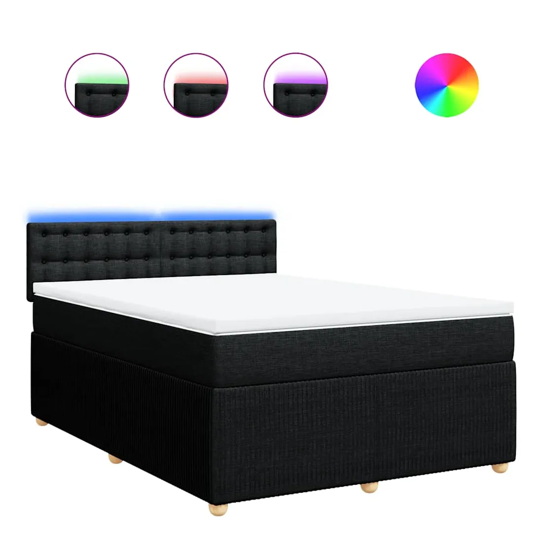 Utilisez ce lit à sommier pour profiter d'une nuit de sommeil réparatrice ! Il vous offre une relaxation maximale et un sommeil agréable. Matériau doux et durable : le tissu en polyester allie douceur, respirabilité et durabilité, vous garantissant un confort et une convivialité ultimes.Matelas à ressorts ensachés : ce matelas à ressorts ensachés comporte des ressorts ensachés individuels qui fonctionnent indépendamment pour offrir un soutien personnalisé en réagissant uniquement à la pression exercée dans chaque zone. Cette conception empêche « l'enroulement » et réduit le transfert de mouvement par rapport aux matelas traditionnels à ressorts ouverts. Chaque ressort ensaché soutient le corps individuellement.Lumières LED pour une ambiance agréable : ce lit est équipé de lumières LED qui peuvent être facilement réglées pour créer un spectacle lumineux personnalisé. Vous pouvez personnaliser les modes, les couleurs et la luminosité pour améliorer l'ambiance de votre espace intérieur.Surmatelas confortable : ce surmatelas améliore le soutien et le confort grâce à sa surface douce et respirante, tout en prolongeant la durée de vie de votre matelas. Sa housse amovible permet un lavage facile, ce qui facilite l'entretien. Bon à savoir :Ce produit est doté d'un connecteur USB qui nécessite une source d'alimentation USB de 5V certifiée (non incluse).Pour des raisons d'hygiène, le matelas ne peut pas être retourné si l'emballage est retiré ou ouvert.Seule la partie avec un symbole de ciseaux peut être coupée et seule la partie avec l'USB continuera à fonctionner comme avant.