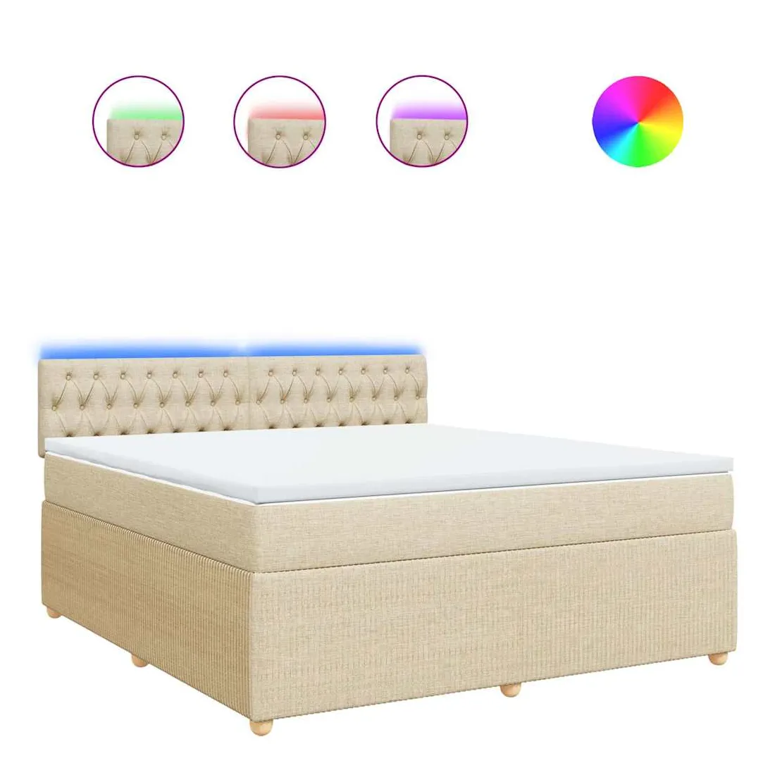 Utilisez ce lit à sommier pour profiter d'une nuit de sommeil réparatrice ! Il vous offre une relaxation maximale et un sommeil agréable. Matériau doux et durable : le tissu en polyester allie douceur, respirabilité et durabilité, vous garantissant un confort et une convivialité ultimes.Matelas à ressorts ensachés : ce matelas à ressorts ensachés comporte des ressorts ensachés individuels qui fonctionnent indépendamment pour offrir un soutien personnalisé en réagissant uniquement à la pression exercée dans chaque zone. Cette conception empêche « l'enroulement » et réduit le transfert de mouvement par rapport aux matelas traditionnels à ressorts ouverts. Chaque ressort ensaché soutient le corps individuellement.Lumières LED pour une ambiance agréable : ce lit est équipé de lumières LED qui peuvent être facilement réglées pour créer un spectacle lumineux personnalisé. Vous pouvez personnaliser les modes, les couleurs et la luminosité pour améliorer l'ambiance de votre espace intérieur.Surmatelas confortable : ce surmatelas améliore le soutien et le confort grâce à sa surface douce et respirante, tout en prolongeant la durée de vie de votre matelas. Sa housse amovible permet un lavage facile, ce qui facilite l'entretien. Bon à savoir :Ce produit est doté d'un connecteur USB qui nécessite une source d'alimentation USB de 5V certifiée (non incluse).Pour des raisons d'hygiène, le matelas ne peut pas être retourné si l'emballage est retiré ou ouvert.Seule la partie avec un symbole de ciseaux peut être coupée et seule la partie avec l'USB continuera à fonctionner comme avant.