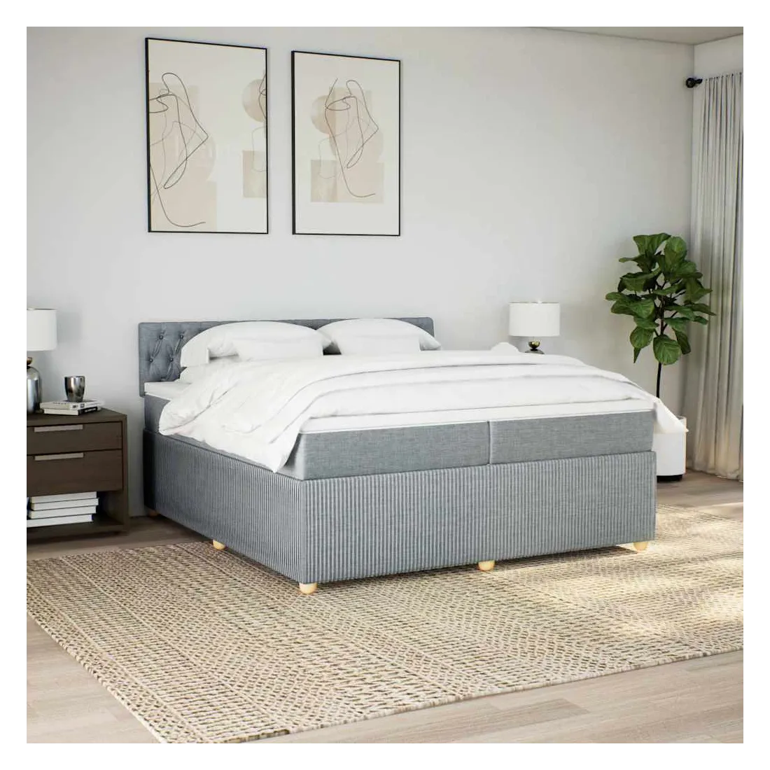 Sommier à lattes de lit avec matelas Gris clair 200x200cm Tissu