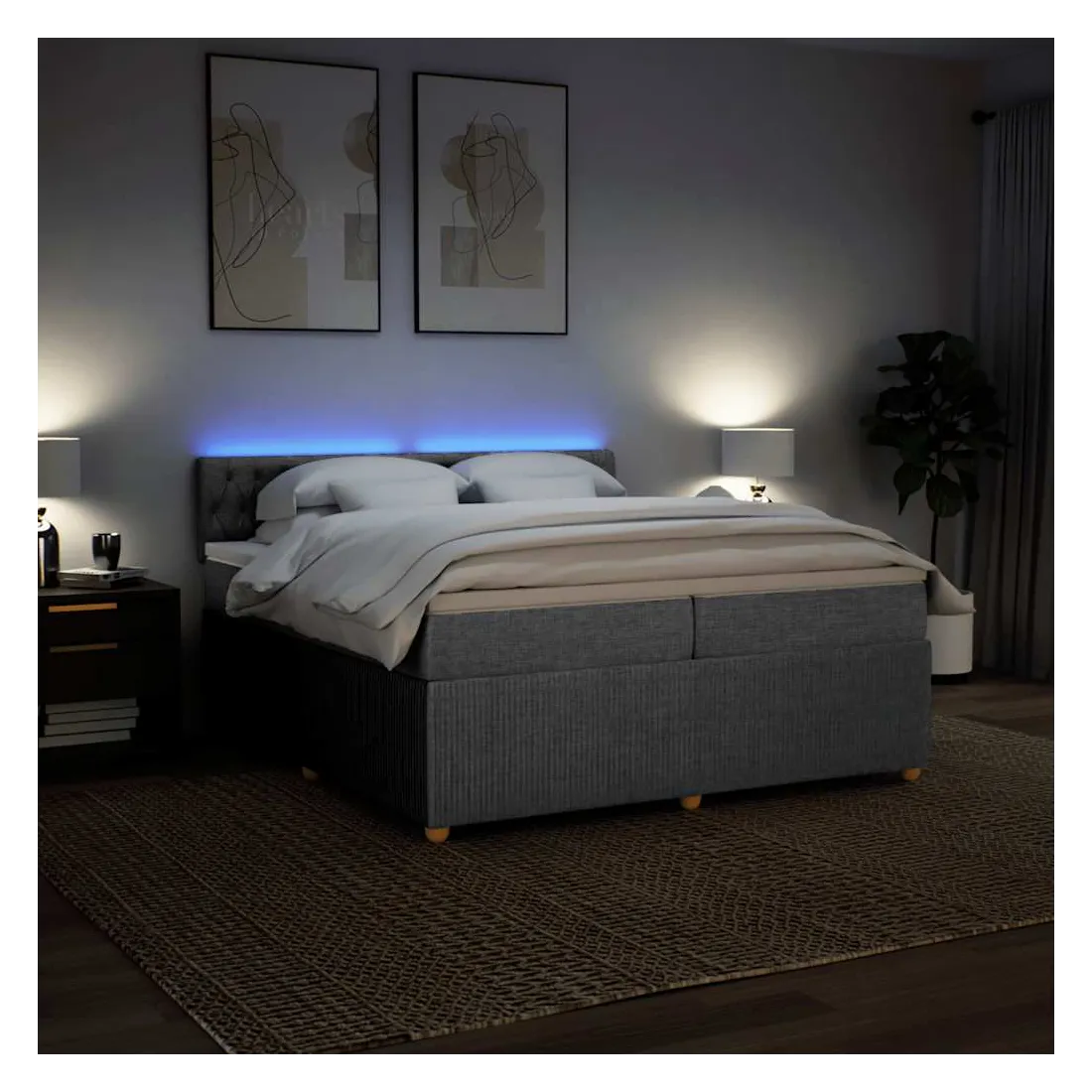 vidaXLUtilisez ce lit à sommier pour profiter d'une nuit de sommeil réparatrice ! Il vous offre une relaxation maximale et un sommeil agréable. Matériau doux et durable : le tissu en polyester allie douceur, respirabilité et durabilité, vous garantissant un confort et une convivialité ultimes.Matelas à ressorts ensachés : ce matelas à ressorts ensachés comporte des ressorts ensachés individuels qui fonctionnent indépendamment pour offrir un soutien personnalisé en réagissant uniquement à la pression exercée dans chaque zone. Cette conception empêche « l'enroulement » et réduit le transfert de mouvement par rapport aux matelas traditionnels à ressorts ouverts. Chaque ressort ensaché soutient le corps individuellement.Lumières LED pour une ambiance agréable : ce lit est équipé de lumières LED qui peuvent être facilement réglées pour créer un spectacle lumineux personnalisé. Vous pouvez personnaliser les modes, les couleurs et la luminosité pour améliorer l'ambiance de votre espace intérieur.Surmatelas confortable : ce surmatelas améliore le soutien et le confort grâce à sa surface douce et respirante, tout en prolongeant la durée de vie de votre matelas. Sa housse amovible permet un lavage facile, ce qui facilite l'entretien. Bon à savoir :Ce produit est doté d'un connecteur USB qui nécessite une source d'alimentation USB de 5V certifiée (non incluse).Pour des raisons d'hygiène, le matelas ne peut pas être retourné si l'emballage est retiré ou ouvert.Seule la partie avec un symbole de ciseaux peut être coupée et seule la partie avec l'USB continuera à fonctionner comme avant.
