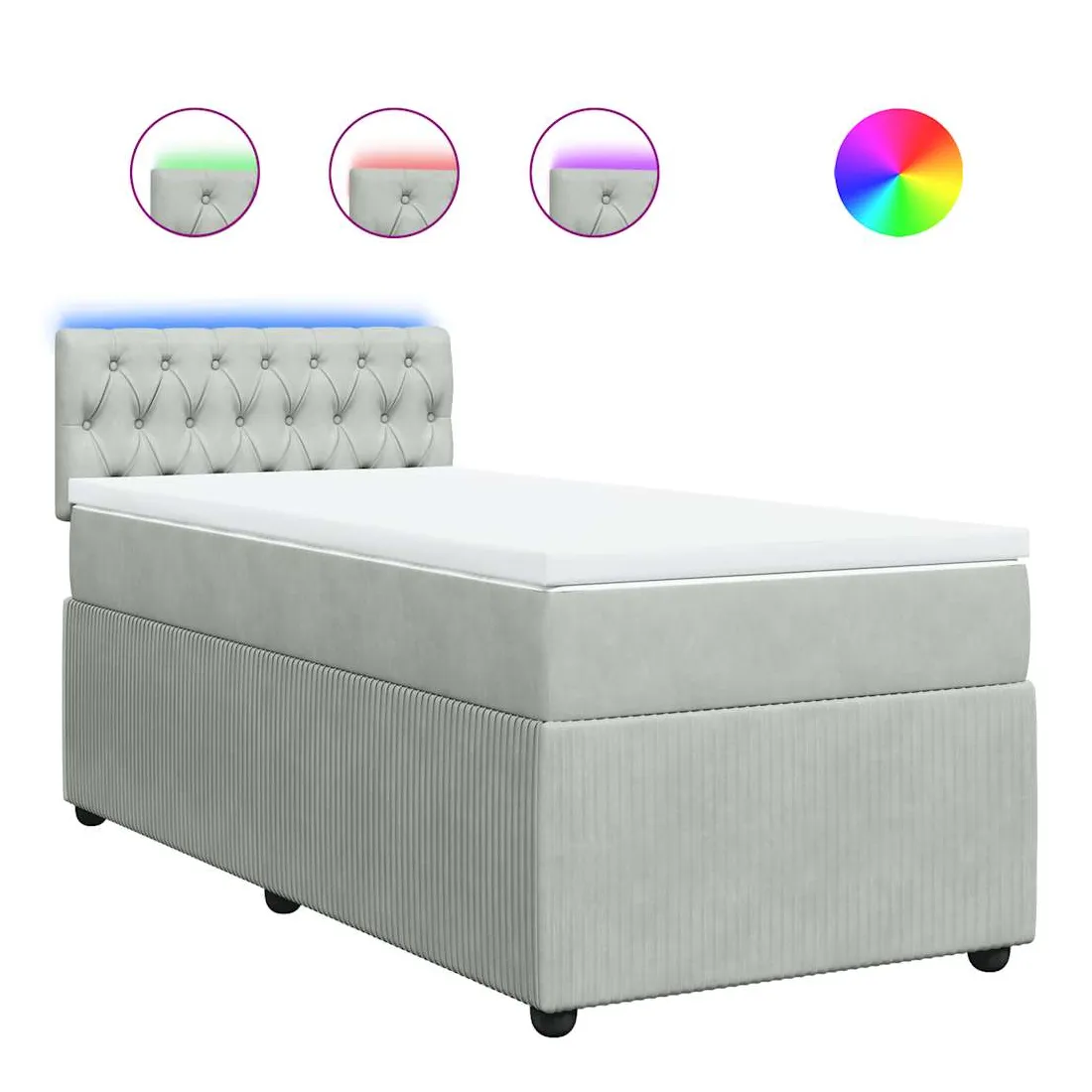 Utilisez ce lit à sommier pour profiter d'une nuit de sommeil réparatrice ! Il vous offre une relaxation maximale et un sommeil agréable. Matériau doux et confortable : le tissu en velours présente une surface douce et lisse qui offre une sensation agréable contre la peau, vous apportant chaleur et confort ultime.Matelas à ressorts ensachés : ce matelas à ressorts ensachés comporte des ressorts ensachés individuels qui fonctionnent indépendamment pour offrir un soutien personnalisé en réagissant uniquement à la pression exercée dans chaque zone. Cette conception empêche « l'enroulement » et réduit le transfert de mouvement par rapport aux matelas traditionnels à ressorts ouverts. Chaque ressort ensaché soutient le corps individuellement.Lumières LED pour une ambiance agréable : ce lit est équipé de lumières LED qui peuvent être facilement réglées pour créer un spectacle lumineux personnalisé. Vous pouvez personnaliser les modes, les couleurs et la luminosité pour améliorer l'ambiance de votre espace intérieur.Surmatelas confortable : ce surmatelas améliore le soutien et le confort grâce à sa surface douce et respirante, tout en prolongeant la durée de vie de votre matelas. Sa housse amovible permet un lavage facile, ce qui facilite l'entretien. Bon à savoir :Ce produit est doté d'un connecteur USB qui nécessite une source d'alimentation USB de 5V certifiée (non incluse).Pour des raisons d'hygiène, le matelas ne peut pas être retourné si l'emballage est retiré ou ouvert.Seule la partie avec un symbole de ciseaux peut être coupée et seule la partie avec l'USB continuera à fonctionner comme avant.