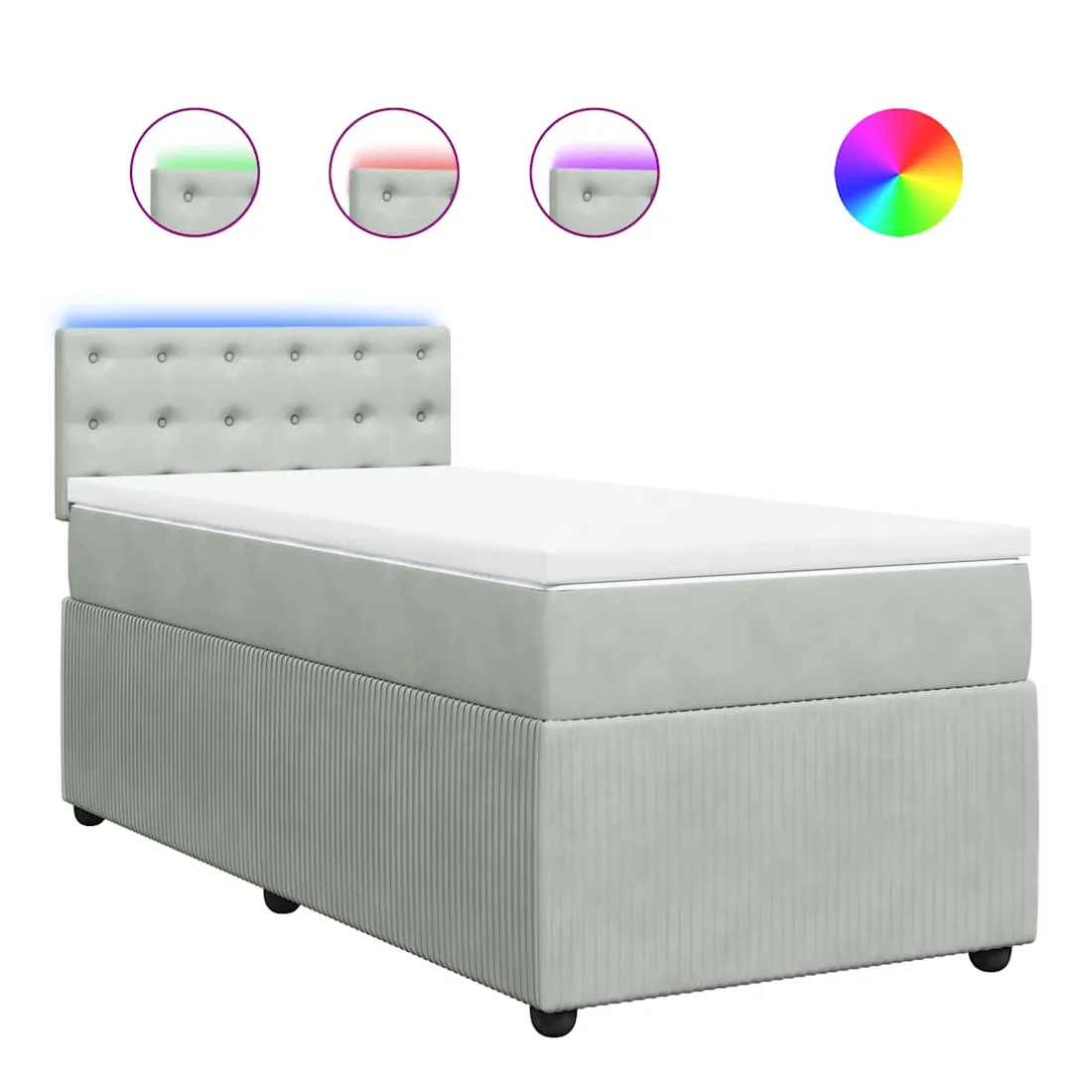 Utilisez ce lit à sommier pour profiter d'une nuit de sommeil réparatrice ! Il vous offre une relaxation maximale et un sommeil agréable. Matériau doux et confortable : le tissu en velours présente une surface douce et lisse qui offre une sensation agréable contre la peau, vous apportant chaleur et confort ultime.Matelas à ressorts ensachés : ce matelas à ressorts ensachés comporte des ressorts ensachés individuels qui fonctionnent indépendamment pour offrir un soutien personnalisé en réagissant uniquement à la pression exercée dans chaque zone. Cette conception empêche « l'enroulement » et réduit le transfert de mouvement par rapport aux matelas traditionnels à ressorts ouverts. Chaque ressort ensaché soutient le corps individuellement.Lumières LED pour une ambiance agréable : ce lit est équipé de lumières LED qui peuvent être facilement réglées pour créer un spectacle lumineux personnalisé. Vous pouvez personnaliser les modes, les couleurs et la luminosité pour améliorer l'ambiance de votre espace intérieur.Surmatelas confortable : ce surmatelas améliore le soutien et le confort grâce à sa surface douce et respirante, tout en prolongeant la durée de vie de votre matelas. Sa housse amovible permet un lavage facile, ce qui facilite l'entretien. Bon à savoir :Ce produit est doté d'un connecteur USB qui nécessite une source d'alimentation USB de 5V certifiée (non incluse).Pour des raisons d'hygiène, le matelas ne peut pas être retourné si l'emballage est retiré ou ouvert.Seule la partie avec un symbole de ciseaux peut être coupée et seule la partie avec l'USB continuera à fonctionner comme avant.