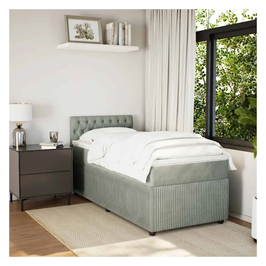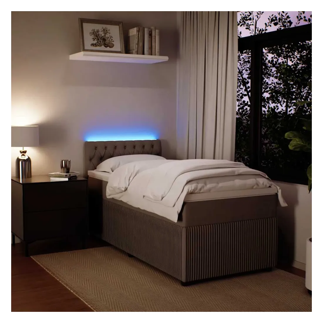 Utilisez ce lit à sommier pour profiter d'une nuit de sommeil réparatrice ! Il vous offre une relaxation maximale et un sommeil agréable. Matériau doux et confortable : le tissu en velours présente une surface douce et lisse qui offre une sensation agréable contre la peau, vous apportant chaleur et confort ultime.Matelas à ressorts ensachés : ce matelas à ressorts ensachés comporte des ressorts ensachés individuels qui fonctionnent indépendamment pour offrir un soutien personnalisé en réagissant uniquement à la pression exercée dans chaque zone. Cette conception empêche « l'enroulement » et réduit le transfert de mouvement par rapport aux matelas traditionnels à ressorts ouverts. Chaque ressort ensaché soutient le corps individuellement.Lumières LED pour une ambiance agréable : ce lit est équipé de lumières LED qui peuvent être facilement réglées pour créer un spectacle lumineux personnalisé. Vous pouvez personnaliser les modes, les couleurs et la luminosité pour améliorer l'ambiance de votre espace intérieur.Surmatelas confortable : ce surmatelas améliore le soutien et le confort grâce à sa surface douce et respirante, tout en prolongeant la durée de vie de votre matelas. Sa housse amovible permet un lavage facile, ce qui facilite l'entretien. Bon à savoir :Ce produit est doté d'un connecteur USB qui nécessite une source d'alimentation USB de 5V certifiée (non incluse).Pour des raisons d'hygiène, le matelas ne peut pas être retourné si l'emballage est retiré ou ouvert.Seule la partie avec un symbole de ciseaux peut être coupée et seule la partie avec l'USB continuera à fonctionner comme avant.