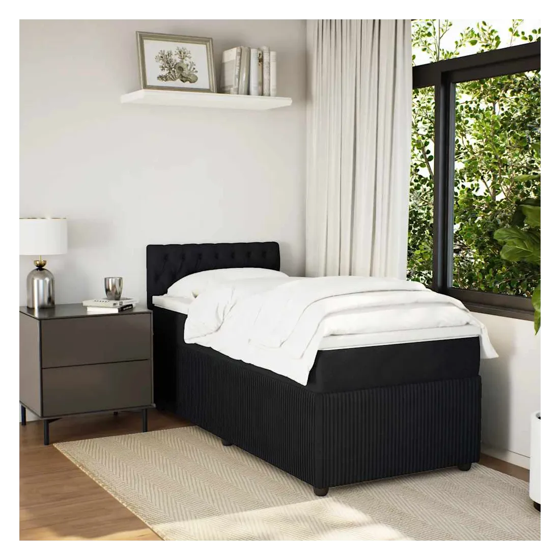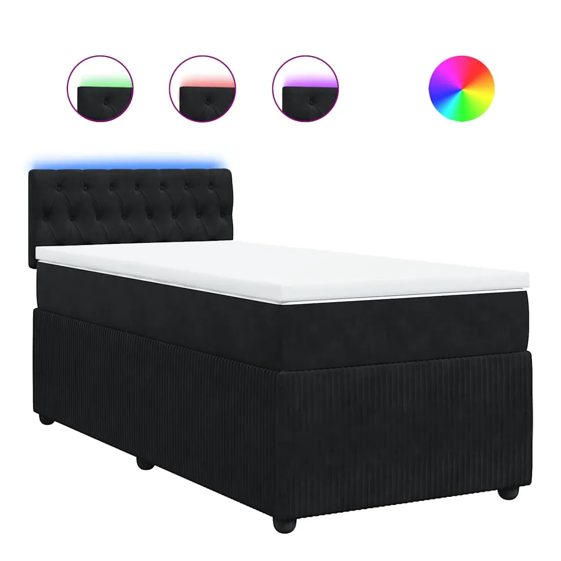 Utilisez ce lit à sommier pour profiter d'une nuit de sommeil réparatrice ! Il vous offre une relaxation maximale et un sommeil agréable. Matériau doux et confortable : le tissu en velours présente une surface douce et lisse qui offre une sensation agréable contre la peau, vous apportant chaleur et confort ultime.Matelas à ressorts ensachés : ce matelas à ressorts ensachés comporte des ressorts ensachés individuels qui fonctionnent indépendamment pour offrir un soutien personnalisé en réagissant uniquement à la pression exercée dans chaque zone. Cette conception empêche « l'enroulement » et réduit le transfert de mouvement par rapport aux matelas traditionnels à ressorts ouverts. Chaque ressort ensaché soutient le corps individuellement.Lumières LED pour une ambiance agréable : ce lit est équipé de lumières LED qui peuvent être facilement réglées pour créer un spectacle lumineux personnalisé. Vous pouvez personnaliser les modes, les couleurs et la luminosité pour améliorer l'ambiance de votre espace intérieur.Surmatelas confortable : ce surmatelas améliore le soutien et le confort grâce à sa surface douce et respirante, tout en prolongeant la durée de vie de votre matelas. Sa housse amovible permet un lavage facile, ce qui facilite l'entretien. Bon à savoir :Ce produit est doté d'un connecteur USB qui nécessite une source d'alimentation USB de 5V certifiée (non incluse).Pour des raisons d'hygiène, le matelas ne peut pas être retourné si l'emballage est retiré ou ouvert.Seule la partie avec un symbole de ciseaux peut être coupée et seule la partie avec l'USB continuera à fonctionner comme avant.