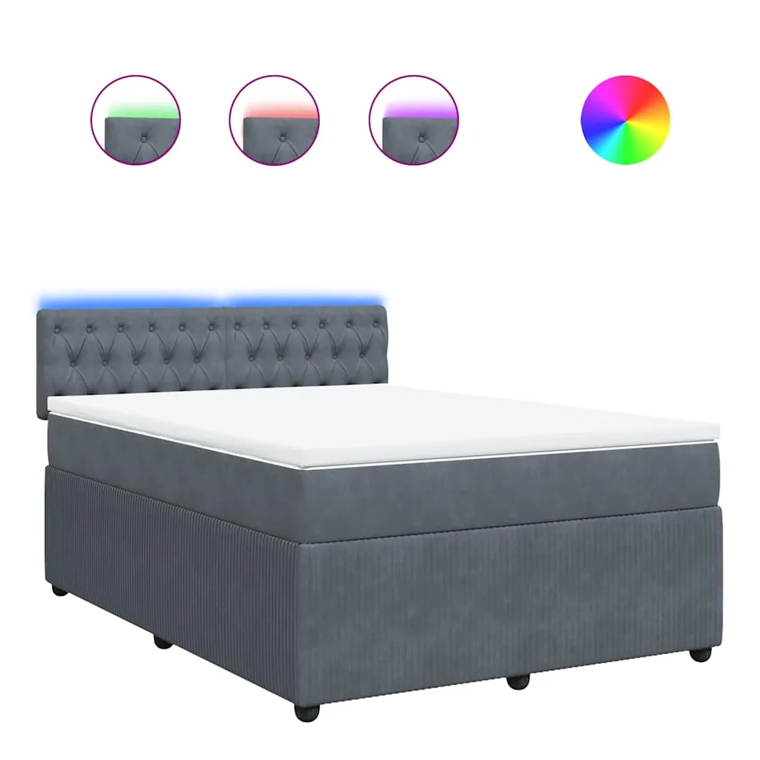 vidaXLUtilisez ce lit à sommier pour profiter d'une nuit de sommeil réparatrice ! Il vous offre une relaxation maximale et un sommeil agréable. Matériau doux et confortable : le tissu en velours présente une surface douce et lisse qui offre une sensation agréable contre la peau, vous apportant chaleur et confort ultime.Matelas à ressorts ensachés : ce matelas à ressorts ensachés comporte des ressorts ensachés individuels qui fonctionnent indépendamment pour offrir un soutien personnalisé en réagissant uniquement à la pression exercée dans chaque zone. Cette conception empêche « l'enroulement » et réduit le transfert de mouvement par rapport aux matelas traditionnels à ressorts ouverts. Chaque ressort ensaché soutient le corps individuellement.Lumières LED pour une ambiance agréable : ce lit est équipé de lumières LED qui peuvent être facilement réglées pour créer un spectacle lumineux personnalisé. Vous pouvez personnaliser les modes, les couleurs et la luminosité pour améliorer l'ambiance de votre espace intérieur.Surmatelas confortable : ce surmatelas améliore le soutien et le confort grâce à sa surface douce et respirante, tout en prolongeant la durée de vie de votre matelas. Sa housse amovible permet un lavage facile, ce qui facilite l'entretien. Bon à savoir :Ce produit est doté d'un connecteur USB qui nécessite une source d'alimentation USB de 5V certifiée (non incluse).Pour des raisons d'hygiène, le matelas ne peut pas être retourné si l'emballage est retiré ou ouvert.Seule la partie avec un symbole de ciseaux peut être coupée et seule la partie avec l'USB continuera à fonctionner comme avant.