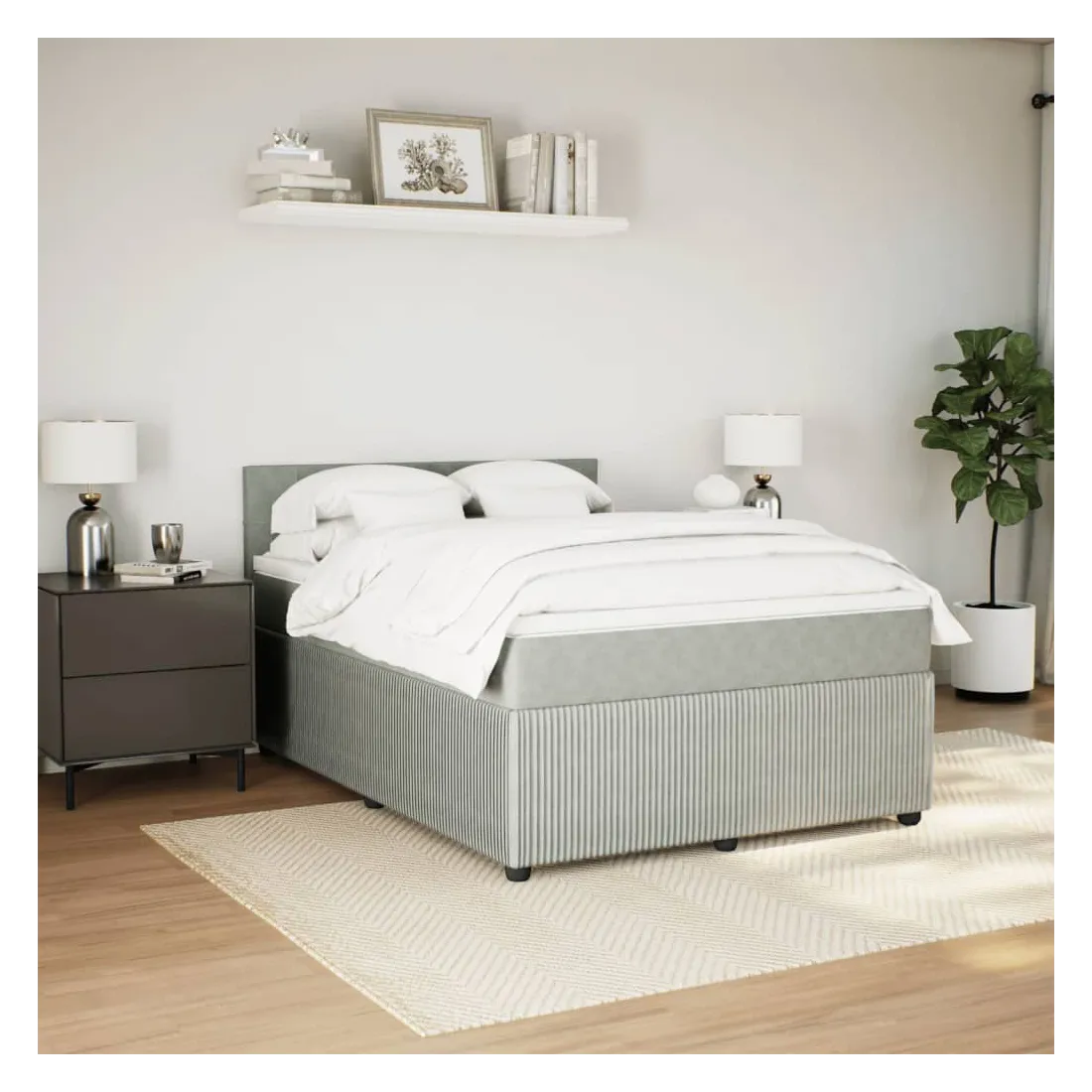 Sommier à lattes de lit et matelas Gris clair 160x200cm Velours