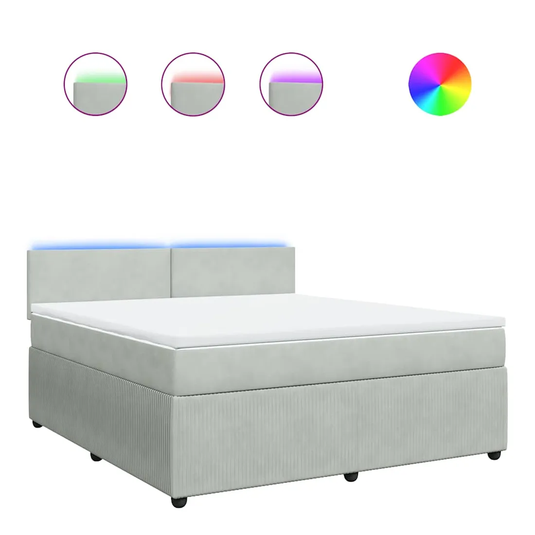 vidaXLUtilisez ce lit à sommier pour profiter d'une nuit de sommeil réparatrice ! Il vous offre une relaxation maximale et un sommeil agréable. Matériau doux et confortable : le tissu en velours présente une surface douce et lisse qui offre une sensation agréable contre la peau, vous apportant chaleur et confort ultime.Matelas à ressorts ensachés : ce matelas à ressorts ensachés comporte des ressorts ensachés individuels qui fonctionnent indépendamment pour offrir un soutien personnalisé en réagissant uniquement à la pression exercée dans chaque zone. Cette conception empêche « l'enroulement » et réduit le transfert de mouvement par rapport aux matelas traditionnels à ressorts ouverts. Chaque ressort ensaché soutient le corps individuellement.Lumières LED pour une ambiance agréable : ce lit est équipé de lumières LED qui peuvent être facilement réglées pour créer un spectacle lumineux personnalisé. Vous pouvez personnaliser les modes, les couleurs et la luminosité pour améliorer l'ambiance de votre espace intérieur.Surmatelas confortable : ce surmatelas améliore le soutien et le confort grâce à sa surface douce et respirante, tout en prolongeant la durée de vie de votre matelas. Sa housse amovible permet un lavage facile, ce qui facilite l'entretien. Bon à savoir :Ce produit est doté d'un connecteur USB qui nécessite une source d'alimentation USB de 5V certifiée (non incluse).Pour des raisons d'hygiène, le matelas ne peut pas être retourné si l'emballage est retiré ou ouvert.Seule la partie avec un symbole de ciseaux peut être coupée et seule la partie avec l'USB continuera à fonctionner comme avant.