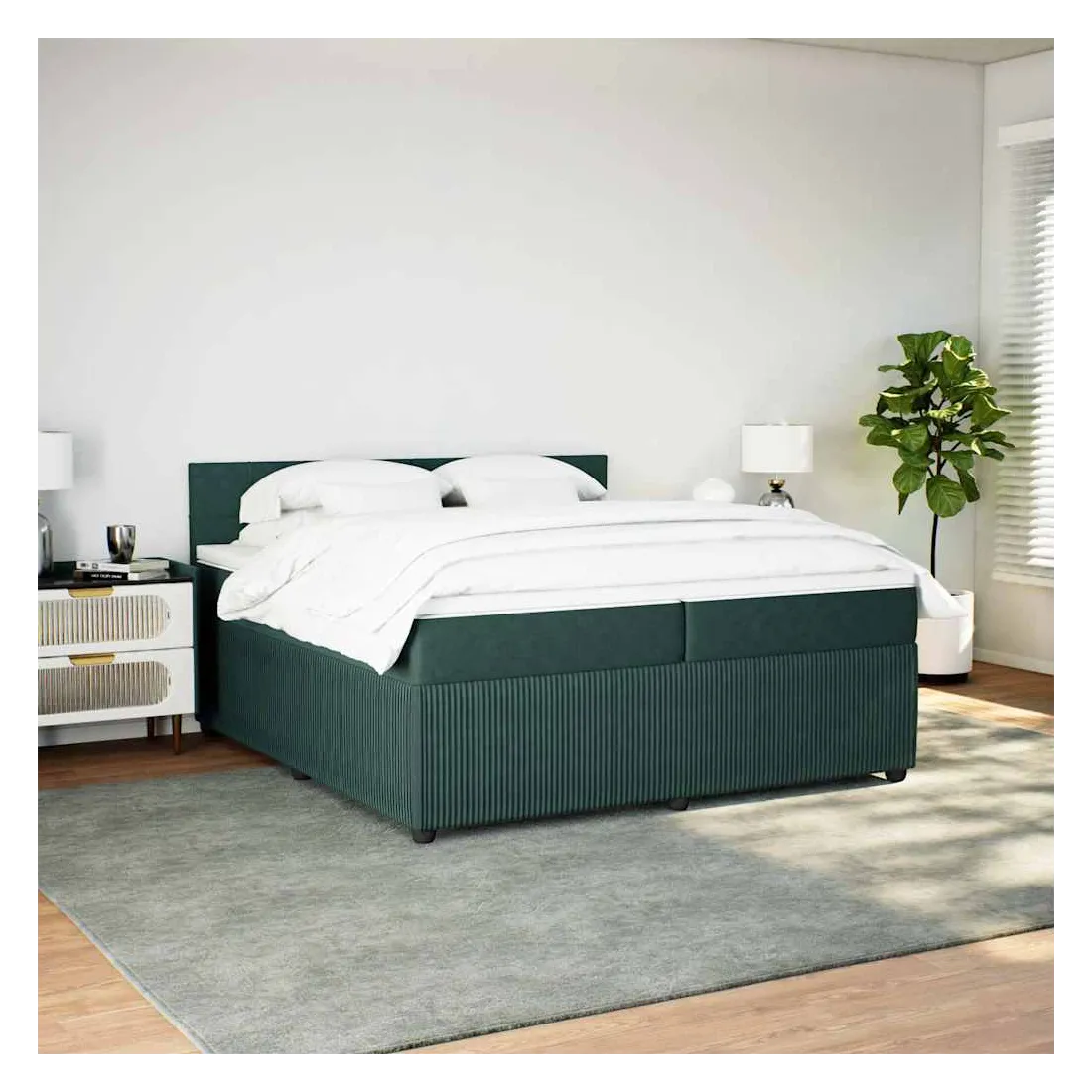 Sommier à lattes de lit et matelas Vert foncé 200x200cm Velours