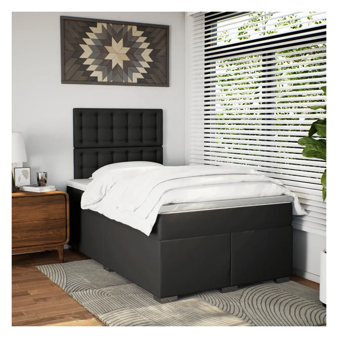 Utilisez ce lit à sommier pour profiter d'une nuit de sommeil réparatrice ! Il vous offre une relaxation maximale et un sommeil agréable. Longue durée de vie et entretien facile : le similicuir est un matériau très durable qui résiste aux taches, ce qui le rend facile à nettoyer avec un chiffon humide. Sa surface lisse lui confère un aspect élégant qui ressemble à celui du cuir véritable.Matelas à ressorts ensachés : ce matelas à ressorts ensachés comporte des ressorts ensachés individuels qui fonctionnent indépendamment pour offrir un soutien personnalisé en réagissant uniquement à la pression exercée dans chaque zone. Cette conception empêche « l'enroulement » et réduit le transfert de mouvement par rapport aux matelas traditionnels à ressorts ouverts. Chaque ressort ensaché soutient le corps individuellement.Tête de lit réglable en hauteur : la tête de lit est réglable en hauteur pour s'adapter à vos préférences.Surmatelas confortable : ce surmatelas améliore le soutien et le confort grâce à sa surface douce et respirante, tout en prolongeant la durée de vie de votre matelas. Sa housse amovible permet un lavage facile, ce qui facilite l'entretien.Lattes pour un soutien optimal : le cadre de lit est complété par des lattes pour offrir un soutien et une respirabilité essentiels à votre matelas. Bon à savoir :Pour des raisons d'hygiène, le matelas ne peut pas être retourné si l'emballage est retiré ou ouvert.