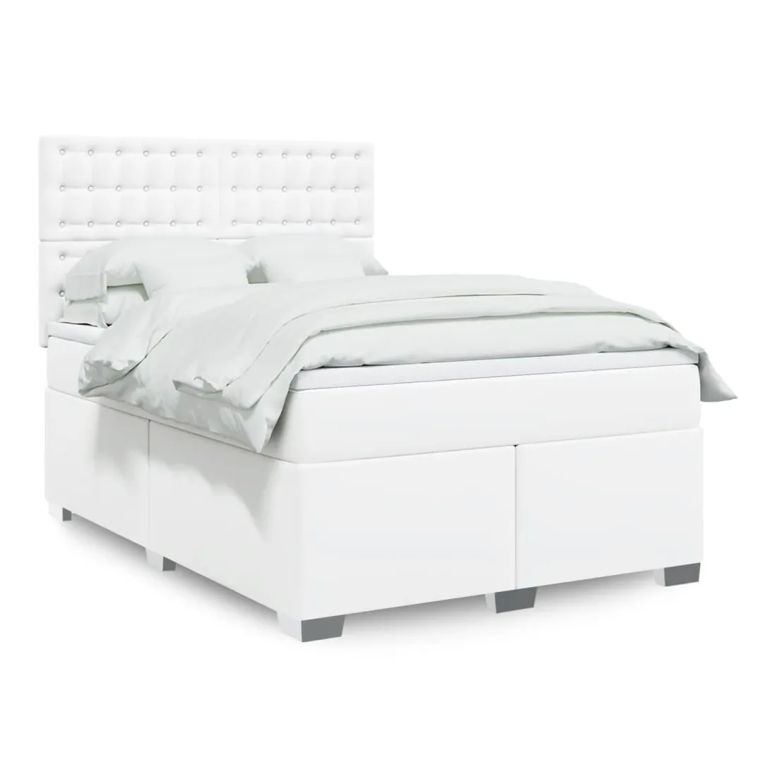 Sommier à lattes de lit avec matelas Blanc 140x190cm Similicuir