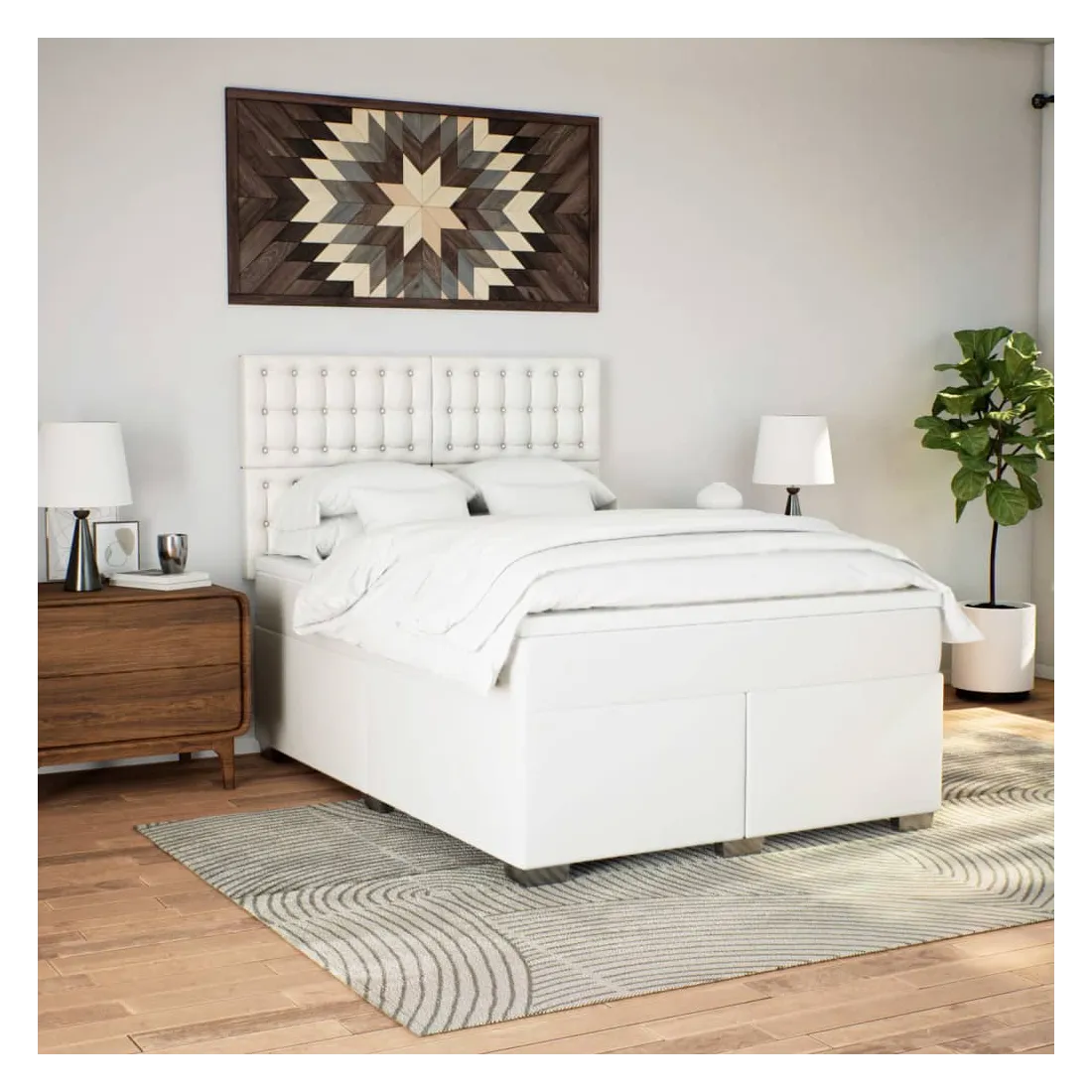 Sommier à lattes de lit avec matelas Blanc 160x200cm Similicuir