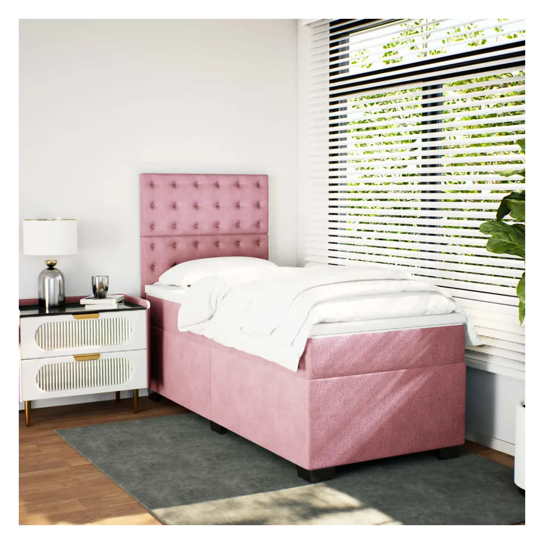 Utilisez ce lit à sommier pour profiter d'une nuit de sommeil réparatrice ! Il vous offre une relaxation maximale et un sommeil agréable. Matériau doux et confortable : le tissu en velours présente une surface douce et lisse qui offre une sensation agréable contre la peau, vous apportant chaleur et confort ultime.Matelas à ressorts ensachés : ce matelas à ressorts ensachés comporte des ressorts ensachés individuels qui fonctionnent indépendamment pour offrir un soutien personnalisé en réagissant uniquement à la pression exercée dans chaque zone. Cette conception empêche « l'enroulement » et réduit le transfert de mouvement par rapport aux matelas traditionnels à ressorts ouverts. Chaque ressort ensaché soutient le corps individuellement.Tête de lit réglable en hauteur : la tête de lit est réglable en hauteur pour s'adapter à vos préférences.Surmatelas confortable : ce surmatelas améliore le soutien et le confort grâce à sa surface douce et respirante, tout en prolongeant la durée de vie de votre matelas. Sa housse amovible permet un lavage facile, ce qui facilite l'entretien.Lattes pour un soutien optimal : le cadre de lit est complété par des lattes pour offrir un soutien et une respirabilité essentiels à votre matelas. Bon à savoir :Pour des raisons d'hygiène, le matelas ne peut pas être retourné si l'emballage est retiré ou ouvert.