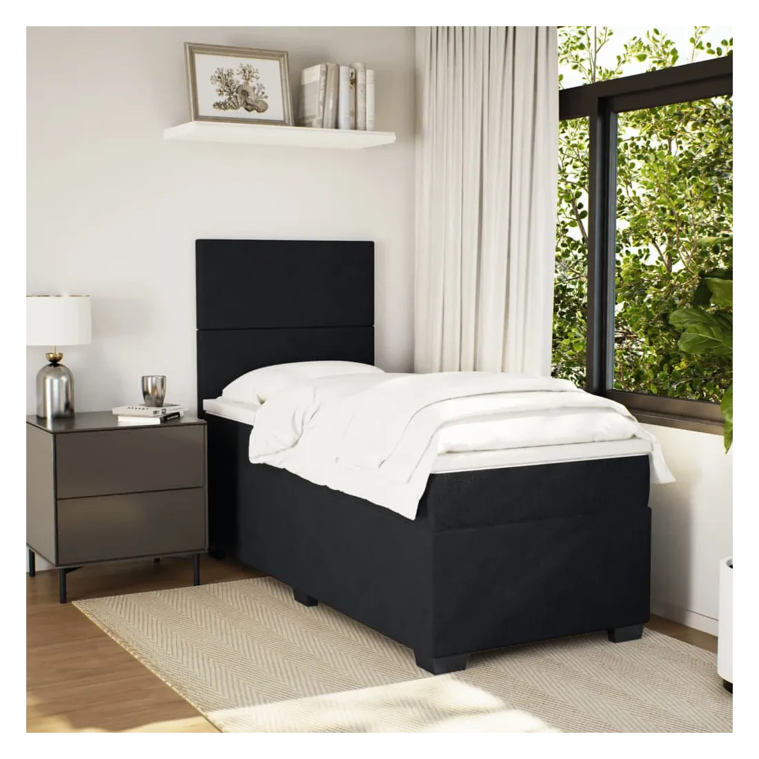 Utilisez ce lit à sommier pour profiter d'une nuit de sommeil réparatrice ! Il vous offre une relaxation maximale et un sommeil agréable. Matériau doux et confortable : le tissu en velours présente une surface douce et lisse qui offre une sensation agréable contre la peau, vous apportant chaleur et confort ultime.Matelas à ressorts ensachés : ce matelas à ressorts ensachés comporte des ressorts ensachés individuels qui fonctionnent indépendamment pour offrir un soutien personnalisé en réagissant uniquement à la pression exercée dans chaque zone. Cette conception empêche « l'enroulement » et réduit le transfert de mouvement par rapport aux matelas traditionnels à ressorts ouverts. Chaque ressort ensaché soutient le corps individuellement.Tête de lit réglable en hauteur : la tête de lit est réglable en hauteur pour s'adapter à vos préférences.Surmatelas confortable : ce surmatelas améliore le soutien et le confort grâce à sa surface douce et respirante, tout en prolongeant la durée de vie de votre matelas. Sa housse amovible permet un lavage facile, ce qui facilite l'entretien.Lattes pour un soutien optimal : le cadre de lit est complété par des lattes pour offrir un soutien et une respirabilité essentiels à votre matelas. Bon à savoir :Pour des raisons d'hygiène, le matelas ne peut pas être retourné si l'emballage est retiré ou ouvert.