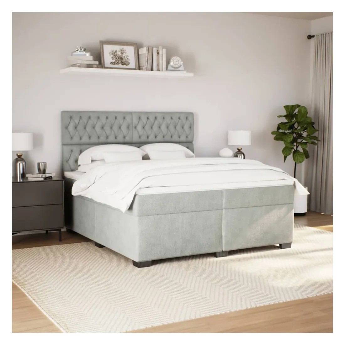 Sommier à lattes de lit et matelas Gris clair 200x200cm Velours