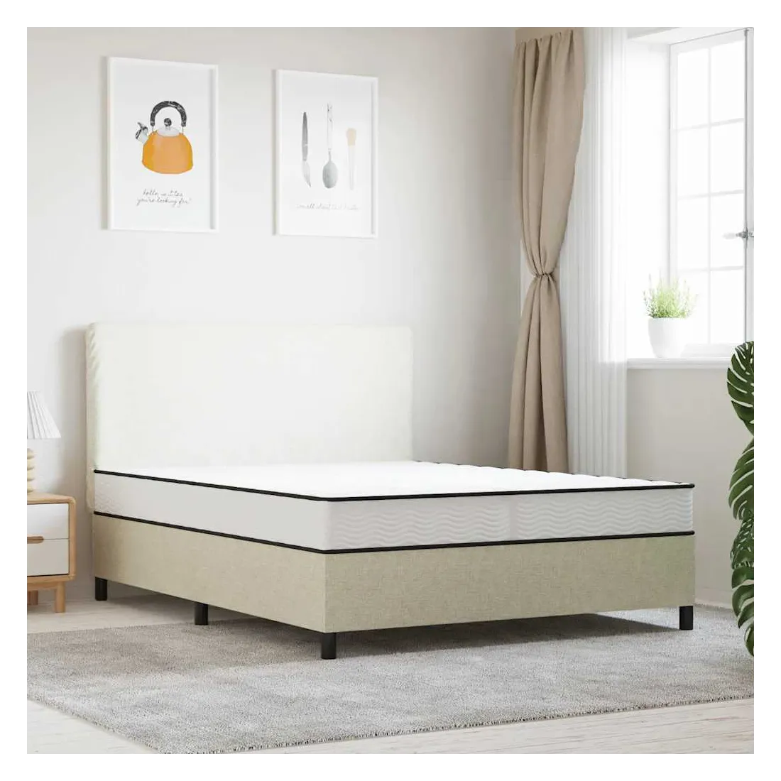 Ce matelas à ressorts bonnell est conçu pour vous apporter une sensation agréable et une expérience de sommeil confortable à la maison. Durabilité et longévité : le tissu présente un aspect simple et épuré tout en restant respirant, doux pour la peau et durable. Excellent soutien : le système de ressorts bonnell se compose de ressorts d'acier en forme de sablier interconnectés, fermes et stables, qui constituent une base de soutien durable pour le matelas. Confort accru : le matelas à ressorts est composé de plusieurs couches qui offrent une sensation de douceur et de confort pour toutes les positions de sommeil. En outre, le matelas absorbe efficacement les bruits et les vibrations causés par les mouvements de rotation, garantissant ainsi un sommeil paisible et non perturbé. Entretien facile : le matelas en mousse à ressorts est doté d'une longue fermeture éclair dans le bas, ce qui permet de retirer facilement la housse pour la nettoyer. Remarque :Le matelas de 140 cm de large est composé de deux matelas de même largeur qui composent sa largeur. Bon à savoir :Ce matelas est composé de deux noyaux de matelas individuels, combinés pour former un matelas unique et unifié.La housse du matelas est lavable jusqu'à 40 °C. Veillez à ne pas la laver fréquemment. Pour votre confort, le matelas est compressé et roulé dans une boîte, et vous pouvez facilement le déplacer et l'installer dans votre pièce.
