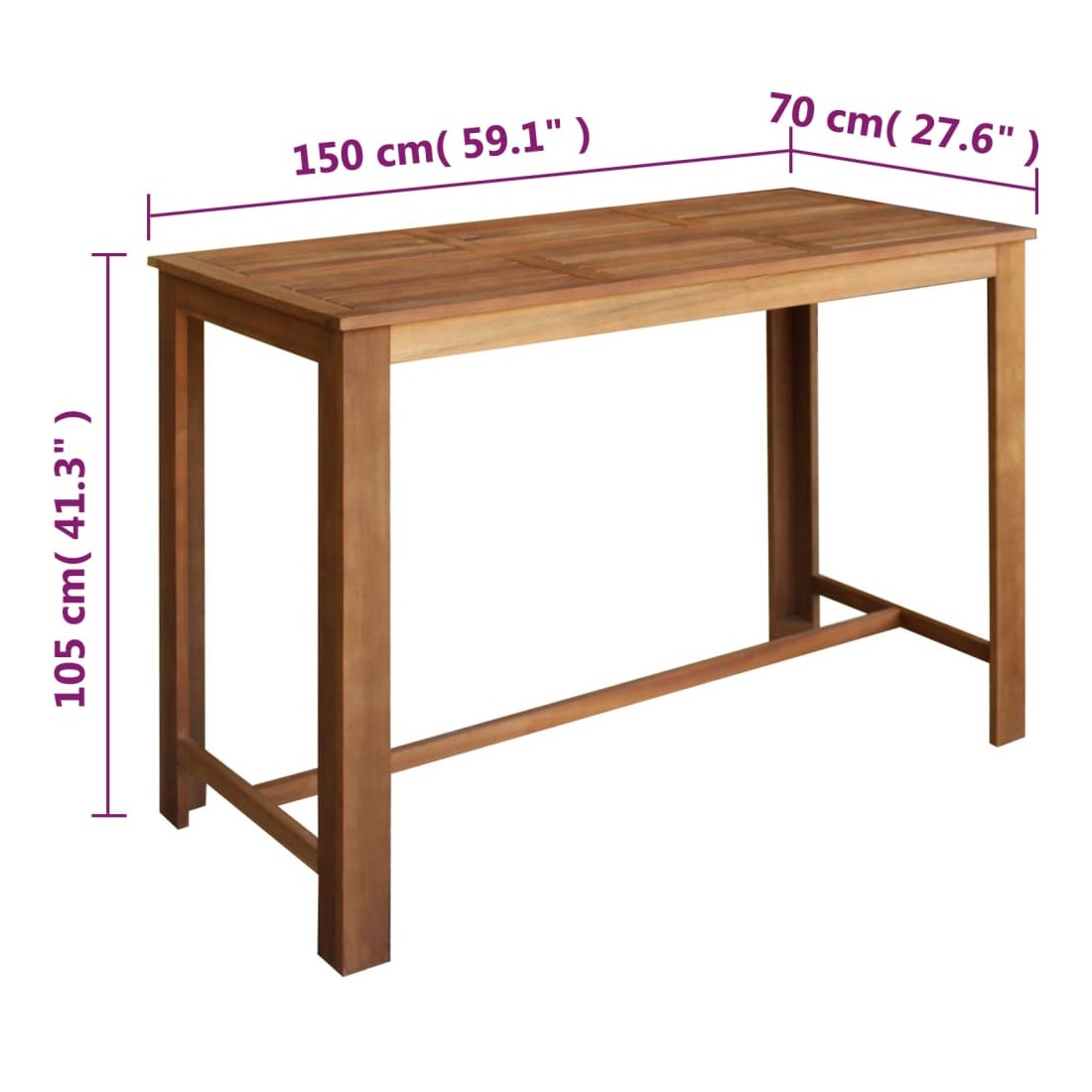 - Dimensions de la table : 150 x 70 x 105 cm (L x l x H)