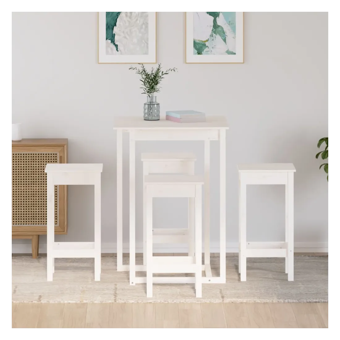 Prenez une gorgée de votre verre de vin préféré ou profitez d'un bon repas avec votre famille et vos amis autour de ce magnifique ensemble de bar en bois ! Le bois de pin solide est un beau matériau naturel. Le bois de pin a un grain droit et les nœuds donnent au matériau son aspect caractéristique et rustique.Cadre stable : le cadre en bois assure robustesse et stabilité.Dessus robuste : la table de bar de l'ensemble de meubles est dotée d'un dessus robuste, parfait pour placer vos boissons, vos aliments et autres objets décoratifs.Design pratique : ces tabourets de bar n'ont pas de dossier, vous pouvez donc vous asseoir confortablement de chaque côté des tabourets et les ranger sous le comptoir lorsqu'ils ne sont pas utilisés. Remarque :Chaque produit est livré avec un manuel de montage dans la boîte pour un montage facile.