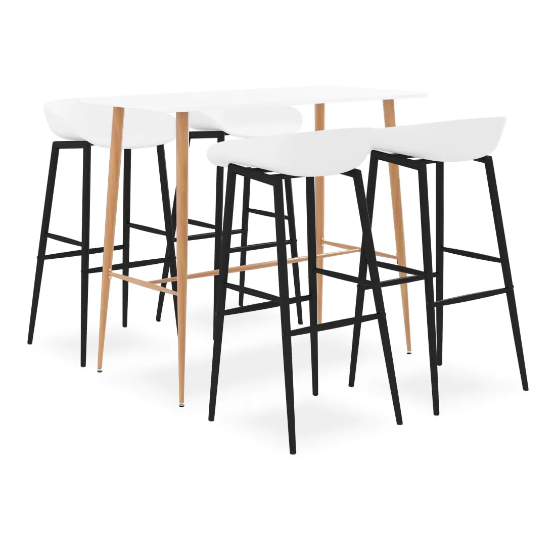 Avec un design moderne et contemporain, notre ensemble de bar est idéal pour les maisons, jardins, bars, pubs ou restaurants modernes. Son design épuré et contemporain complétera toute décoration intérieure. Notre table de comptoir dispose d’un dessus en MDF durable et de solides pieds en métal avec un aspect de bois. Ces tabourets de pub ont un siège ergonomique avec un dossier bas intégré. Fabriquées en PP robuste et soutenues par des solides pieds en métal enduit de poudre, ces chaises de comptoir sont robustes et durables.