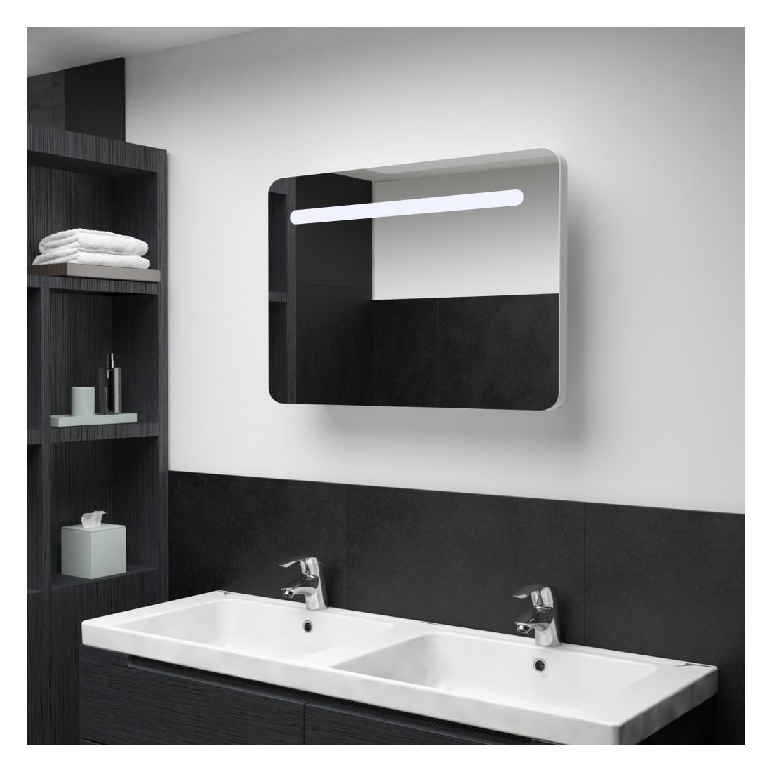 Armoire de salle de bain à miroir LED 80x9,5x55 cm